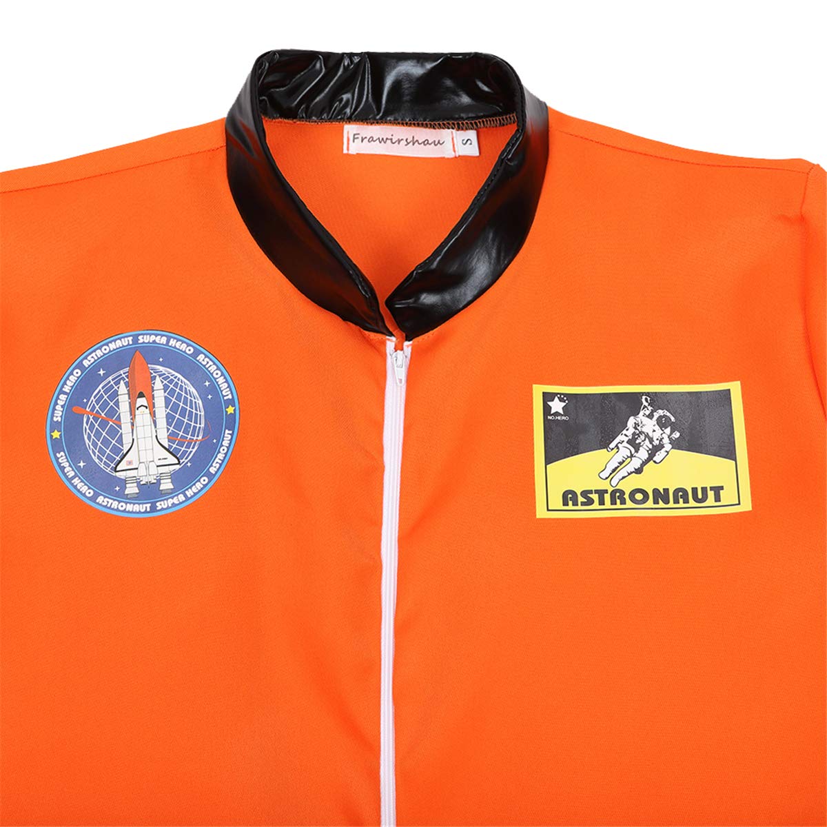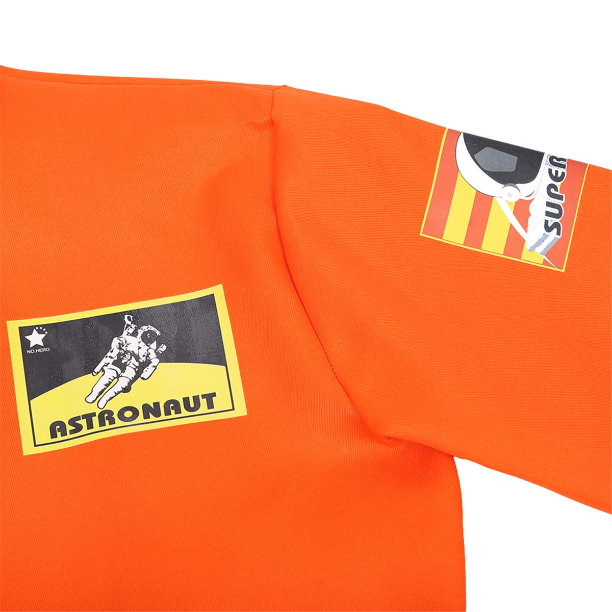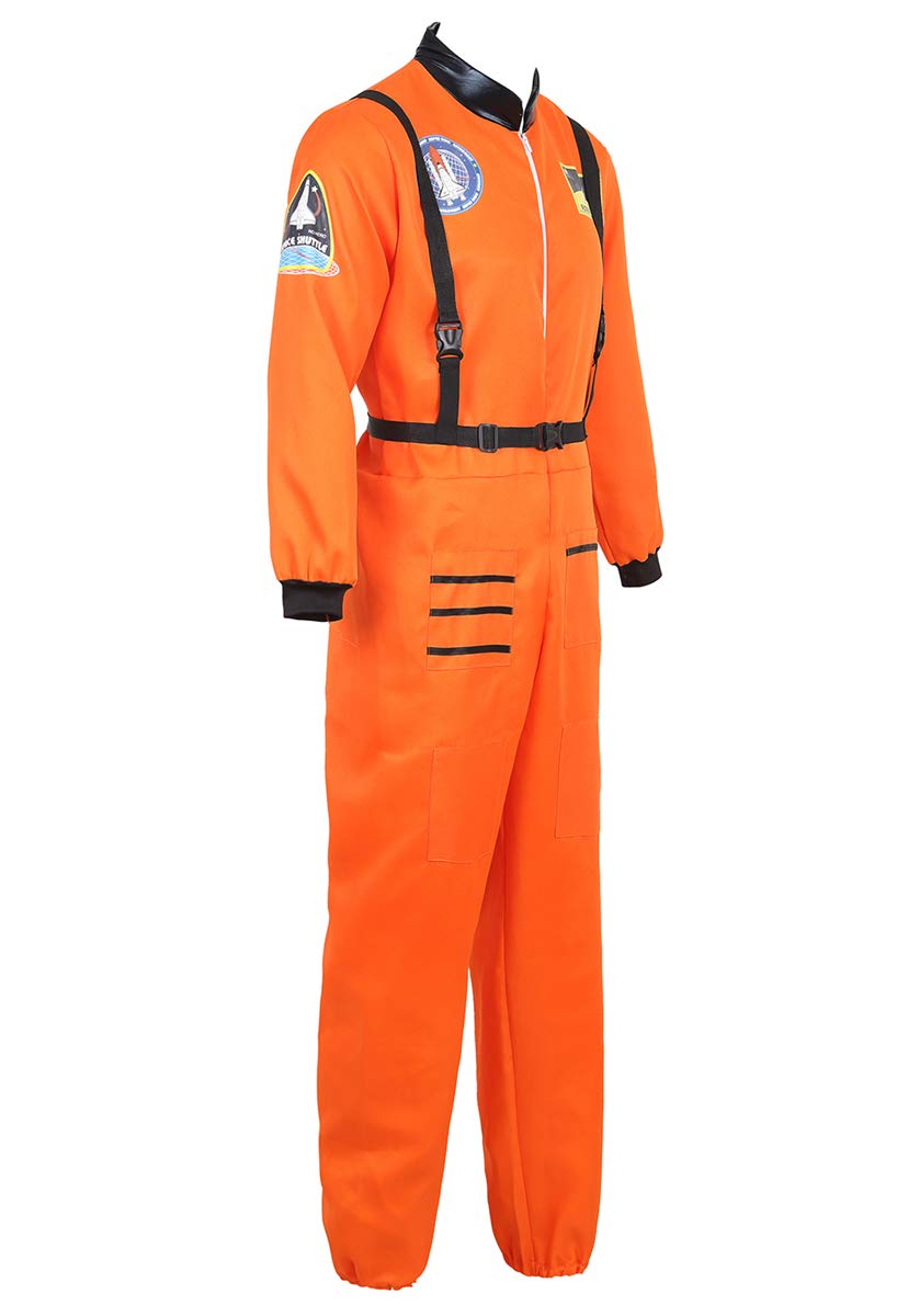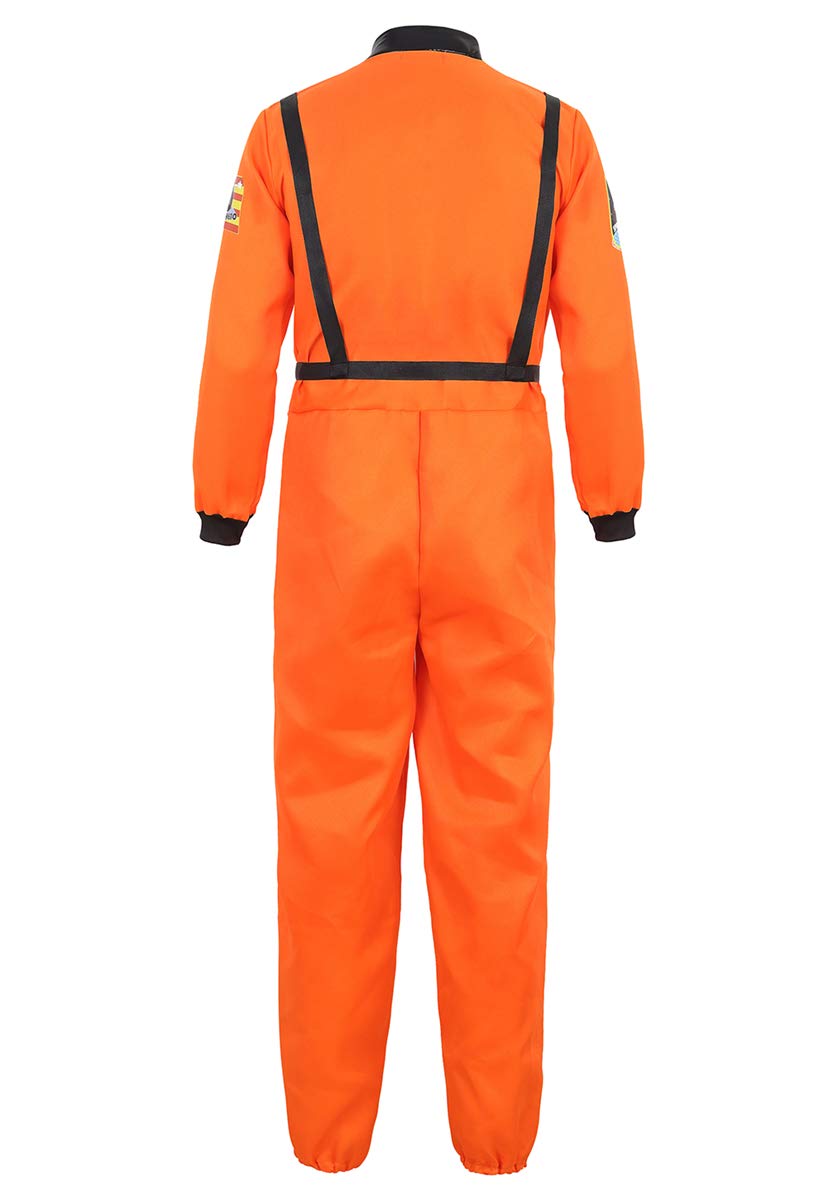 Astronaut Costume Adult, Long-sleeve front zipper jumpsuit space outfit, appealing decorations like space pattern printing on chest and sleeves.