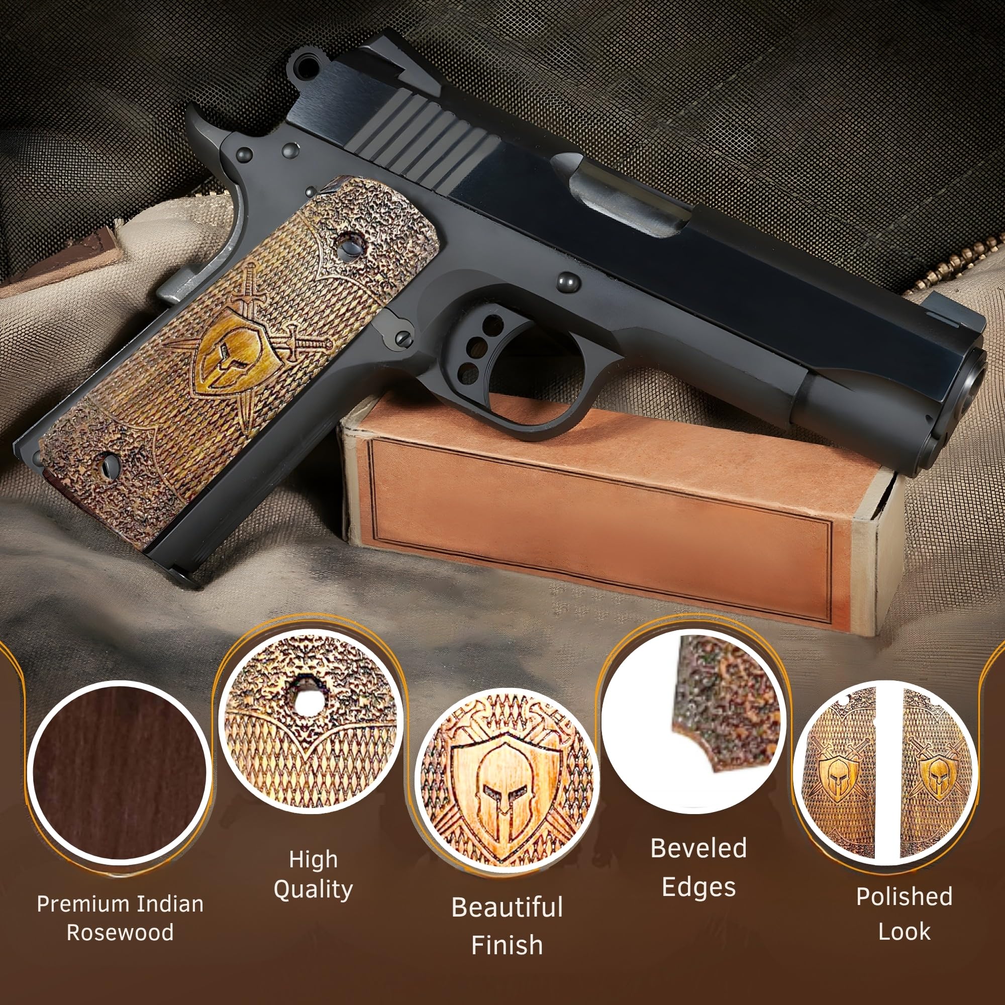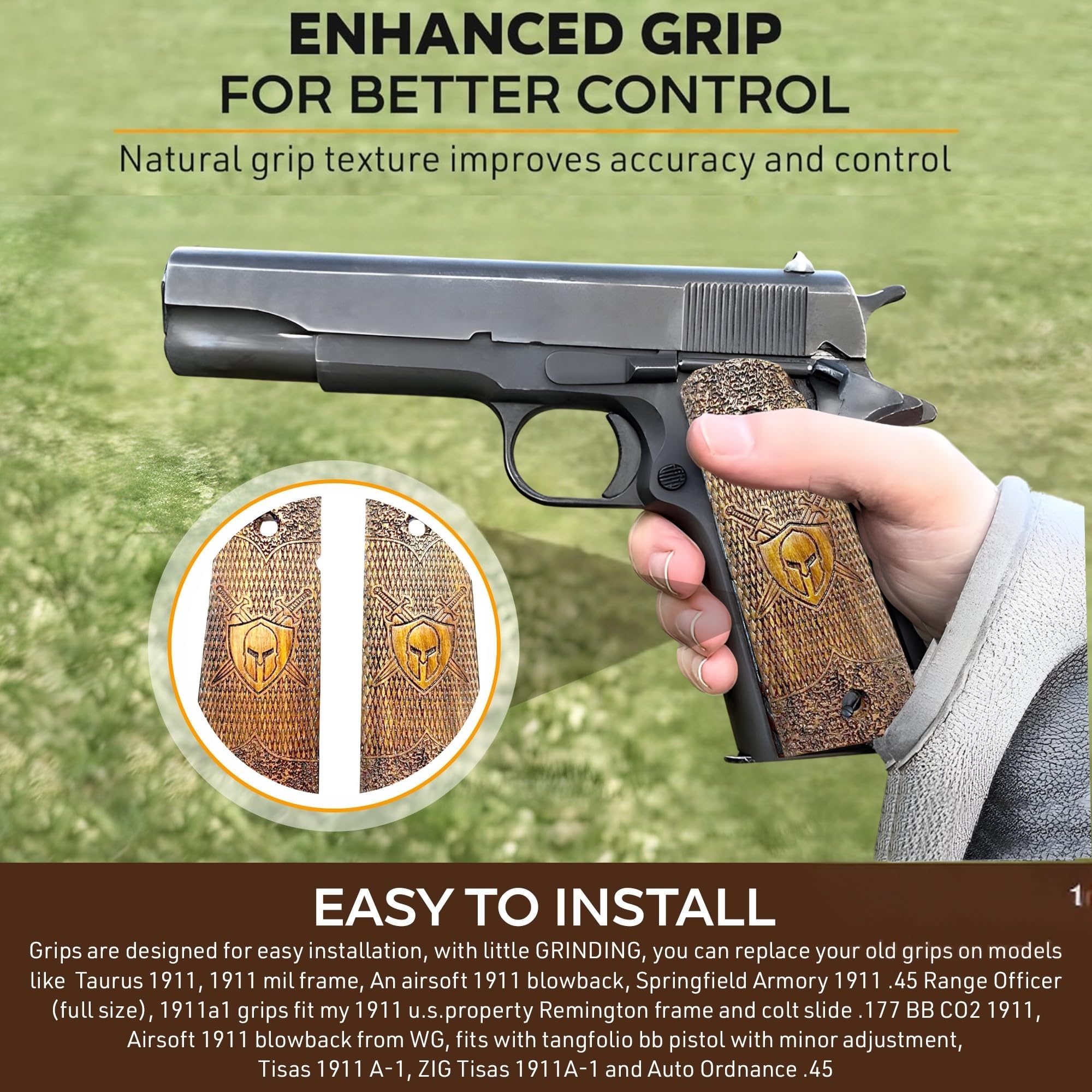 IMPROVED GRIP: The wooden material of these grips provides a natural grip that enhances your control and accuracy when firing your M1911/1911 .45. The improved grip helps reduce recoil and enhances your ability to maintain a steady aim, making them perfect for shooting enthusiasts.