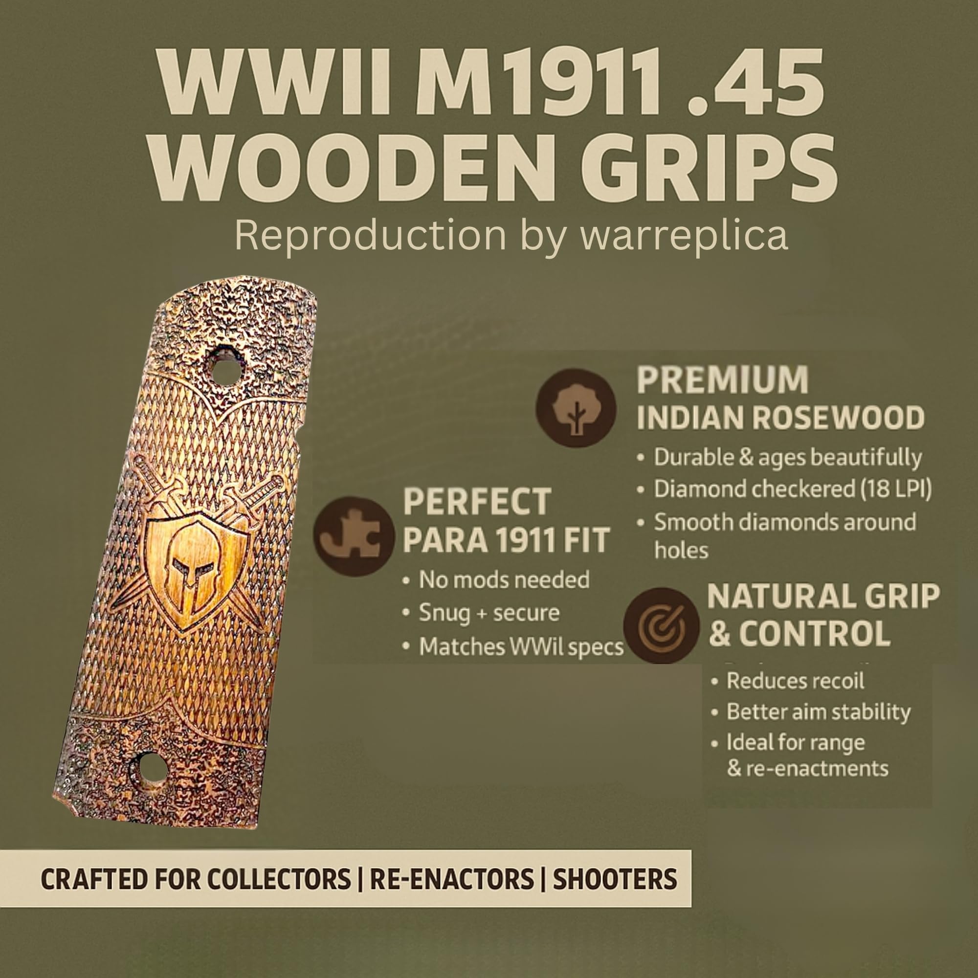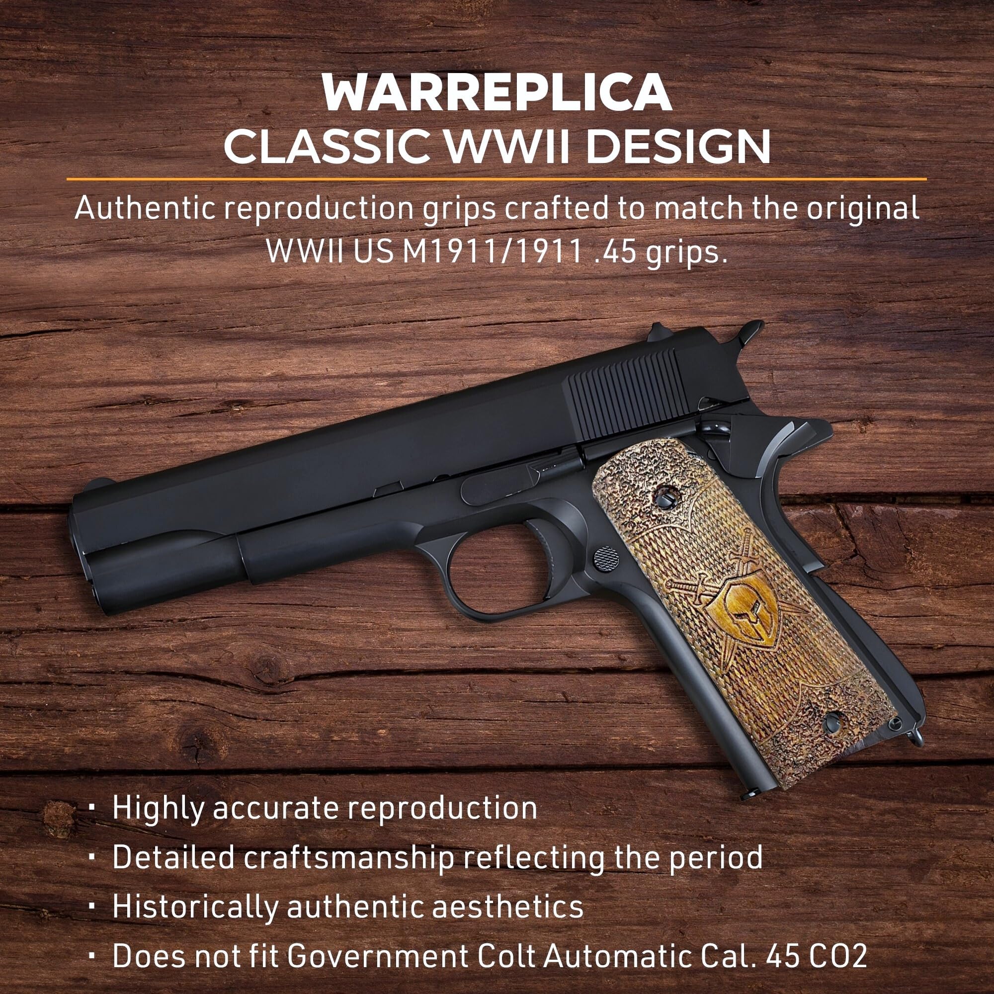 CLASSIC DESIGN: These wooden grips for the WWII US M1911/1911 .45 are meticulously crafted to provide a highly accurate reproduction of the original grips used during World War II.