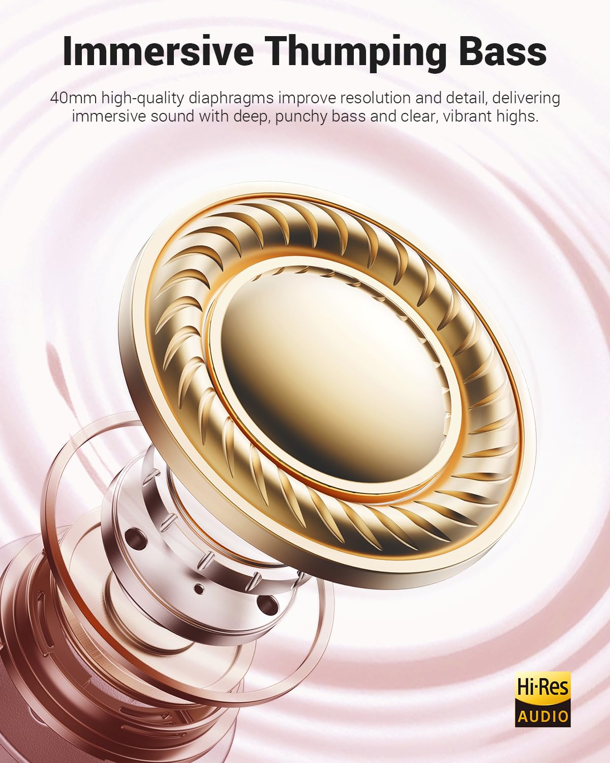All-Day Comfort & Foldable Design - Crafted for extended wear, these over-ear headphones feature ultra-soft protein leather earcups with memory foam cushioning that gently conform to your ears. The adjustable headband and 90° rotating earcups ensure a customized fit, while the foldable design allows for convenient storage and portability—perfect for trips, work, or everyday use.
