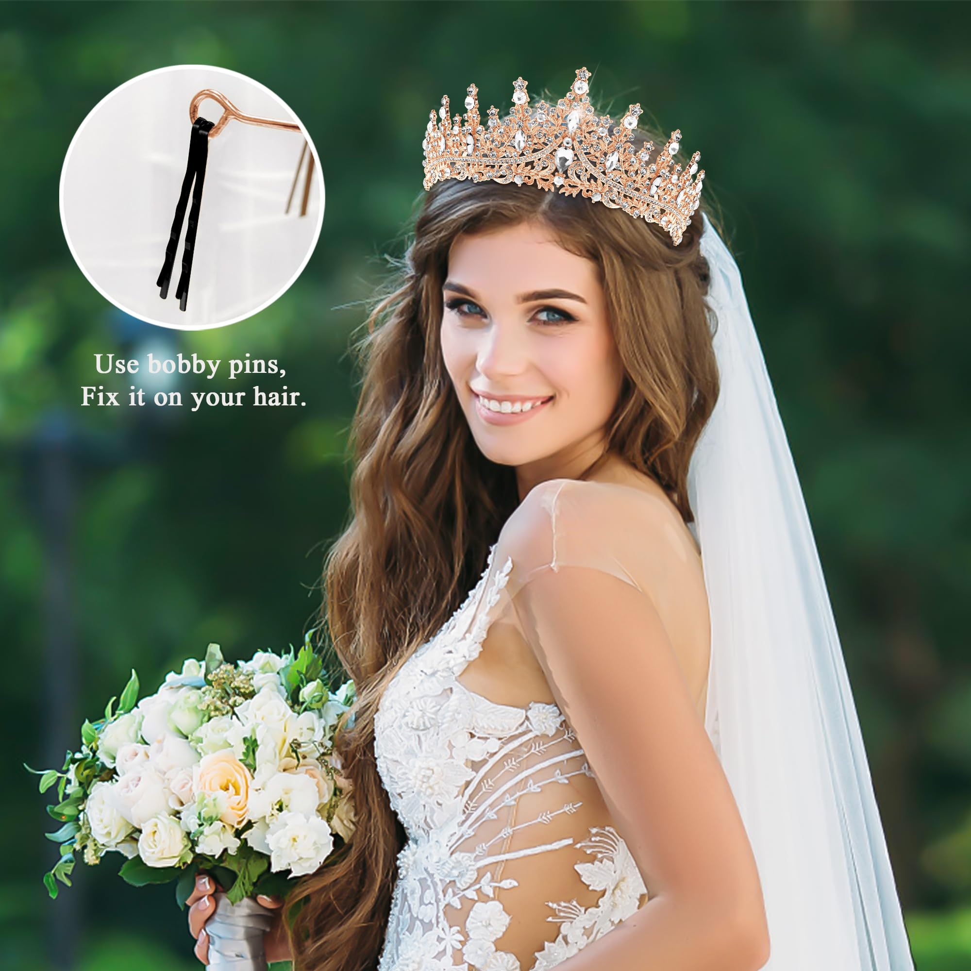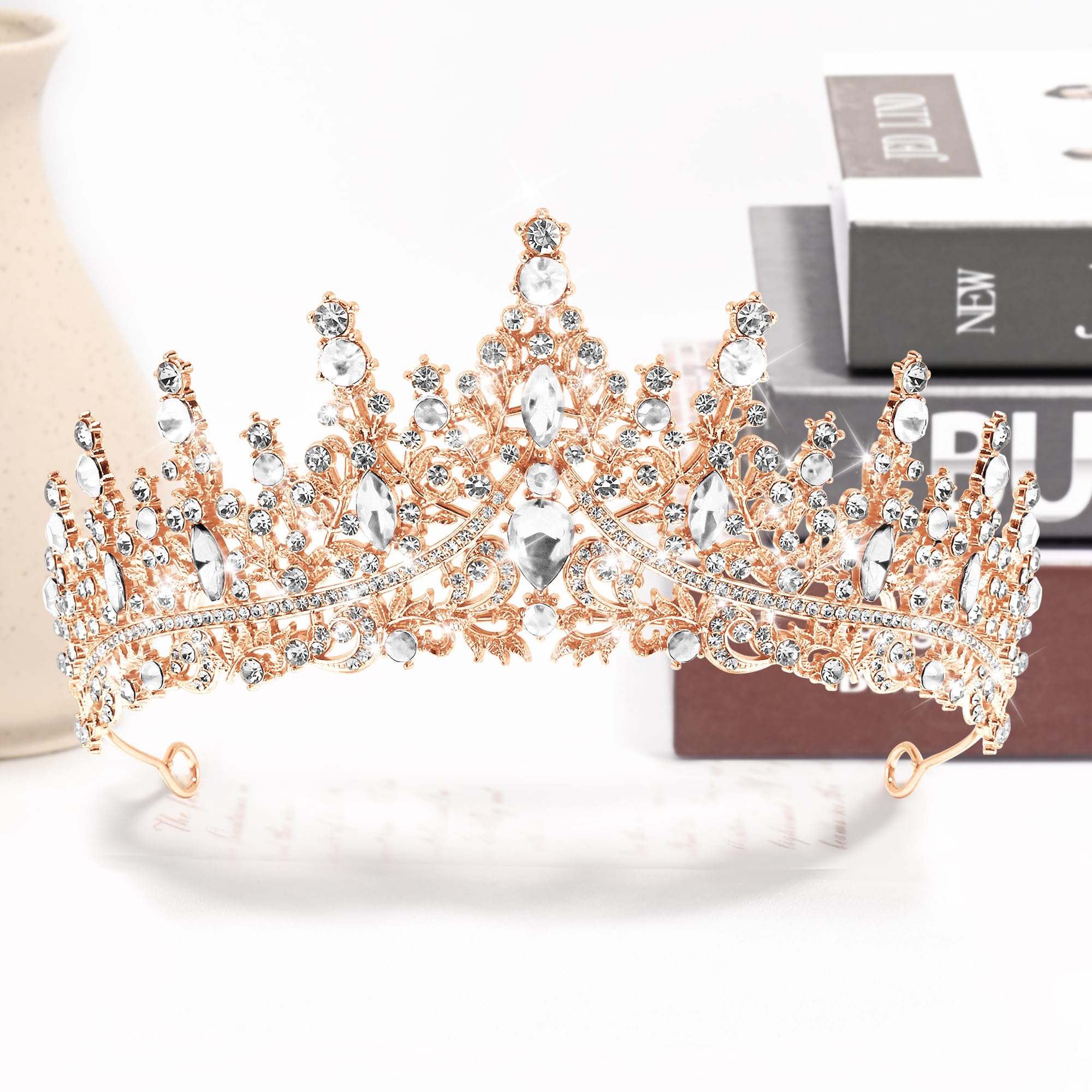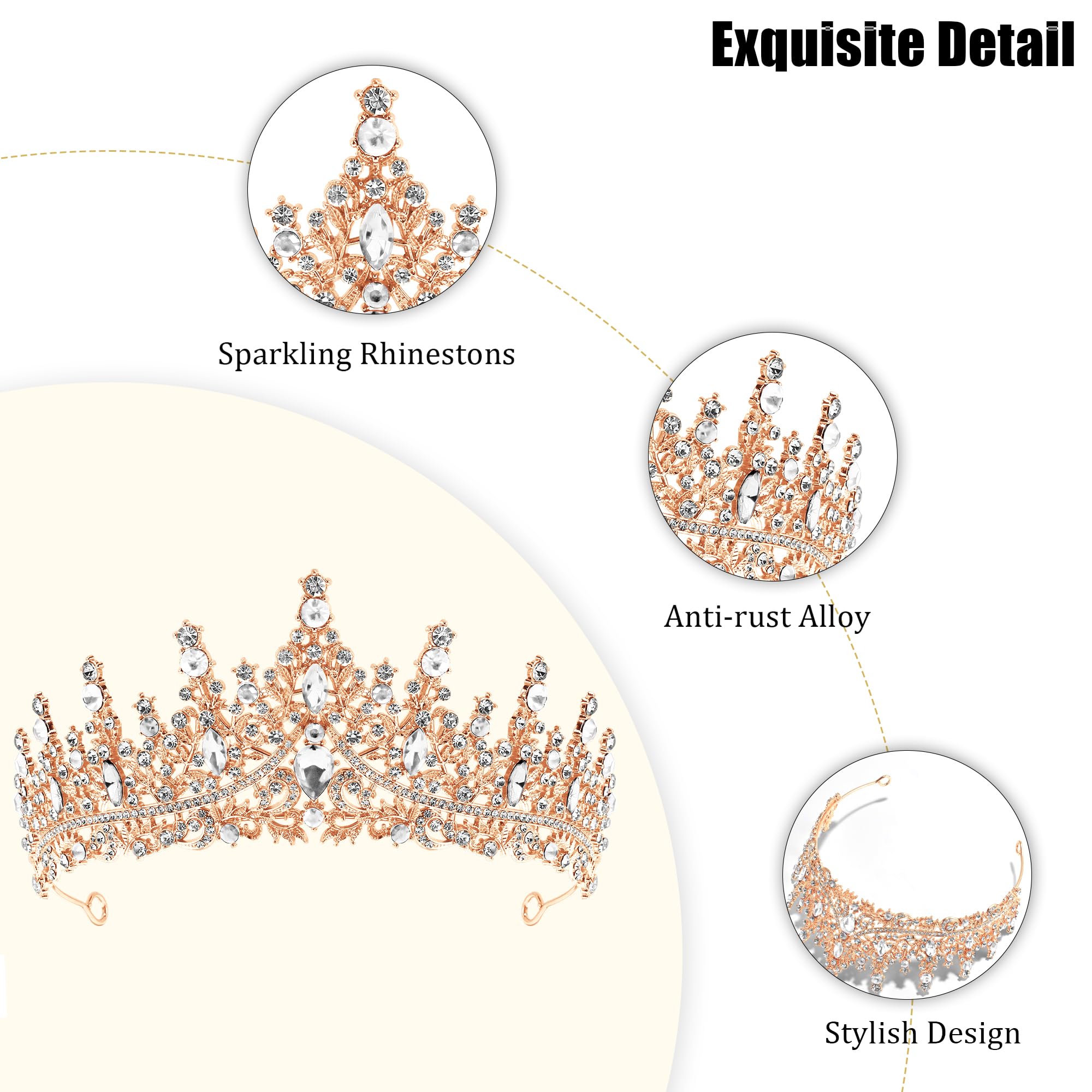 ♛[Shine Like A Diamond] Rose gold tiara is finely crafted, sparkling rhinestones match well with the elegant alloy headband. Classic design have a stylish and timeless appeal, bringing elegance and glamor.