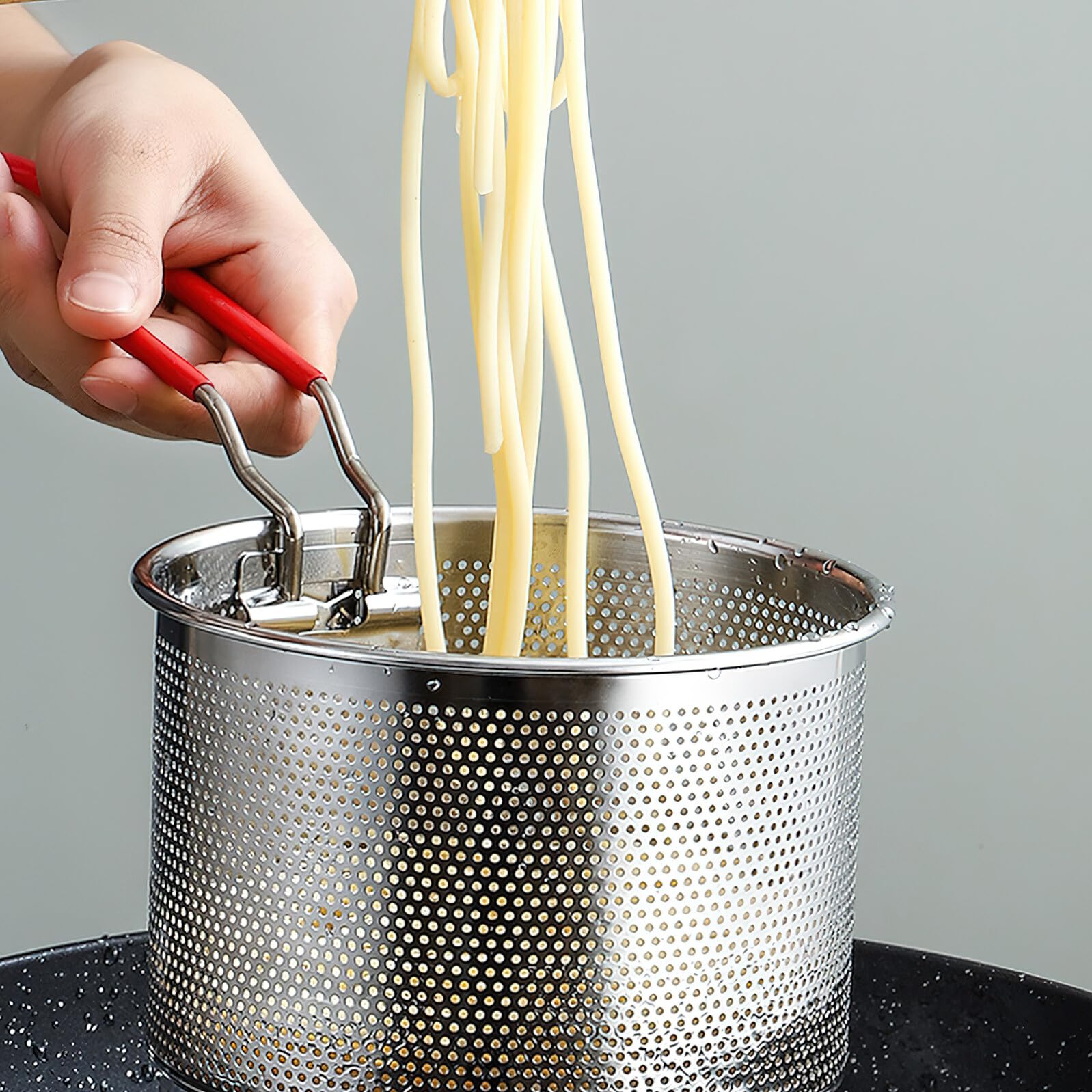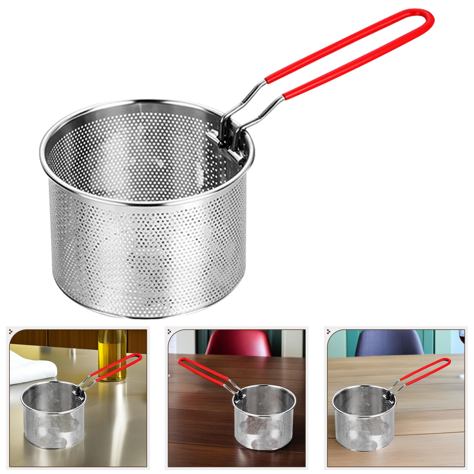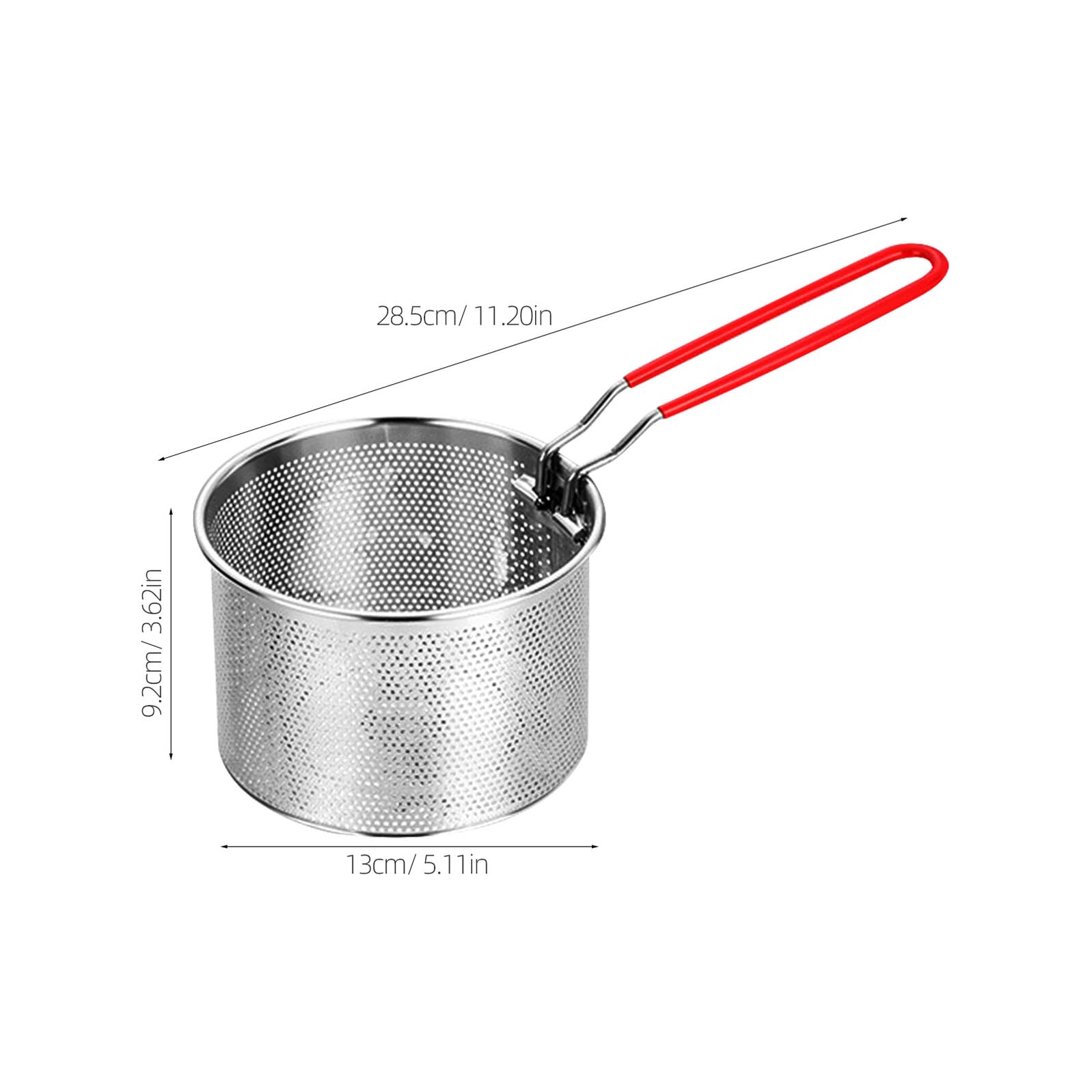 Ergonomic Handle Fryer Basket: This frying food colander with long, heat-resistant handle provides a secure grip, keeping hands safe from hot oil. Detachable for easy storage