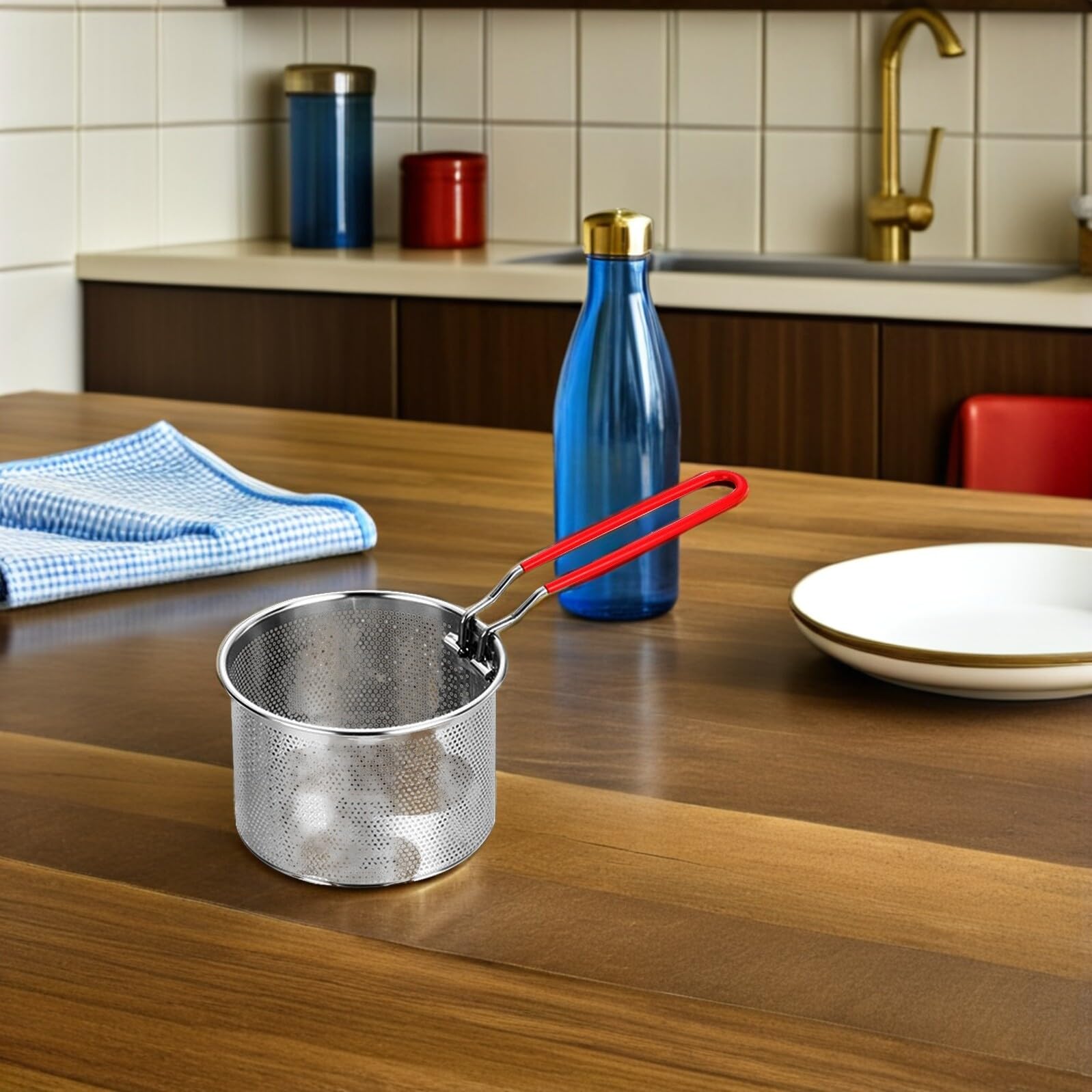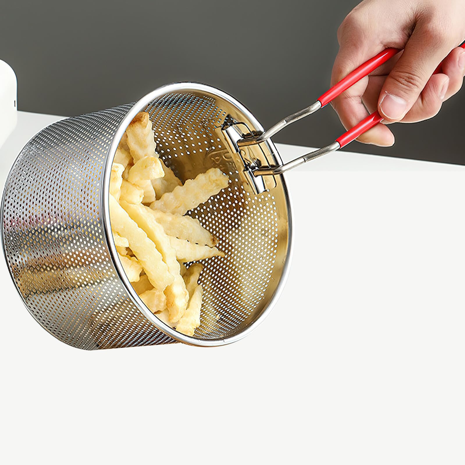 Efficient Frying & Draining: The reusable frying basket mesh design allows oil to drain quickly, reducing excess grease. Perfect for crispy fries, onion rings, or tempura