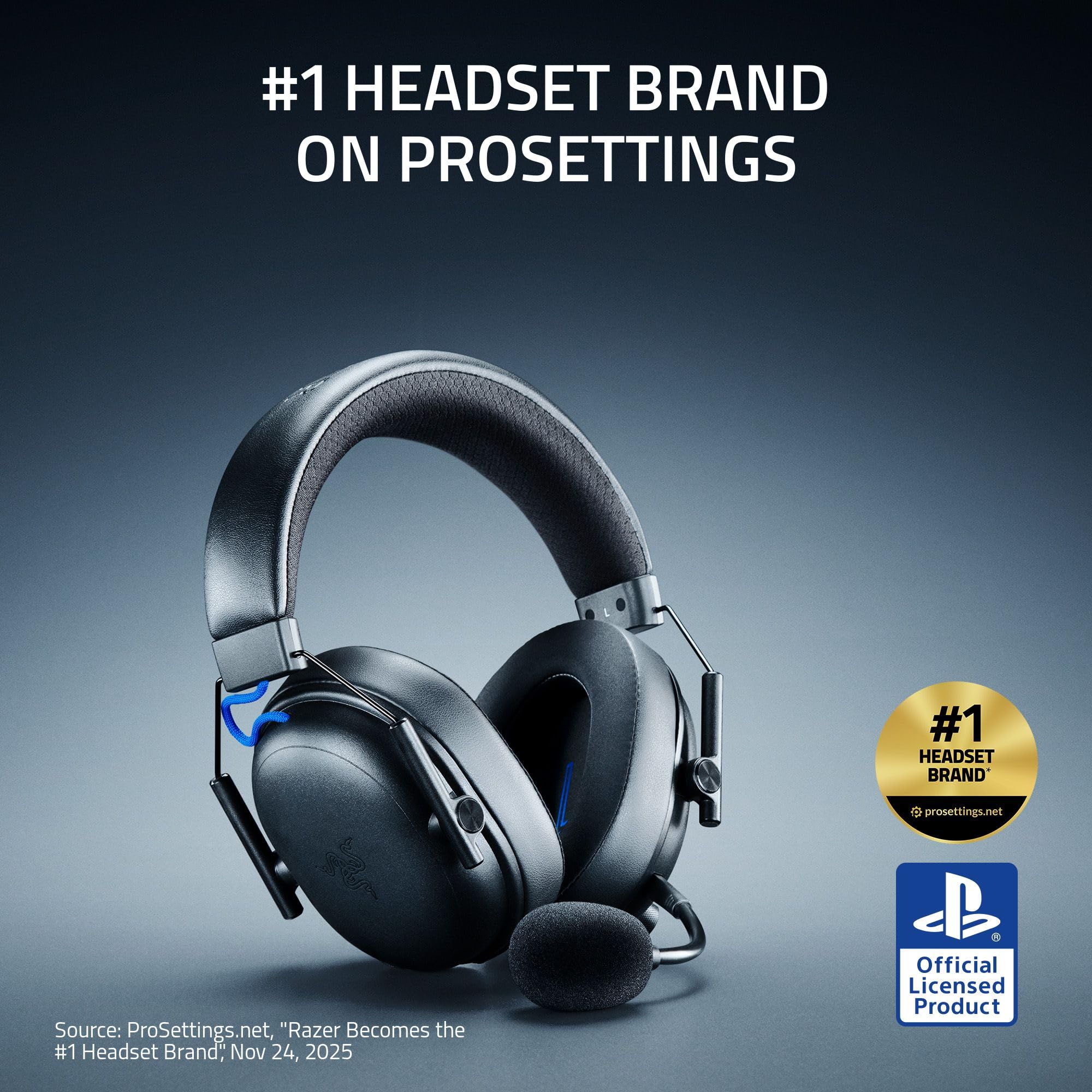 Make your intent to win loud and clear with the Razer BlackShark V3, officially licensed for PlayStation—a wireless esports headset built for peak performance. Featuring Razer HyperSpeed Wireless Gen-2, it delivers ultra-low latency audio with speeds as fast as 10 ms, giving you the edge in every clutch moment. Hear every detail with precision thanks to Razer TriForce Titanium 50 mm Drivers Gen-2, engineered for powerful, accurate sound reproduction. Communicate like a pro with the detachable Razer HyperClear Super Wideband 9.9 mm mic, which captures your voice in rich, high-definition clarity. Experience next-gen surround sound with PlayStation Tempest 3D Audio and THX Spatial Audio on PC. Customize your sound with pro-tuned FPS profiles and EQ settings via Razer Synapse 3. Lightweight, durable, and tournament-ready, the BlackShark V3 for PlayStation is your ultimate competitive advantage. Compatibility PS5 PC Mac Smartphones, tablets, and handheld gaming devices with Bluetooth audio capability THX Spatial Audio: Only available on Windows 10® 64-bit (or higher)