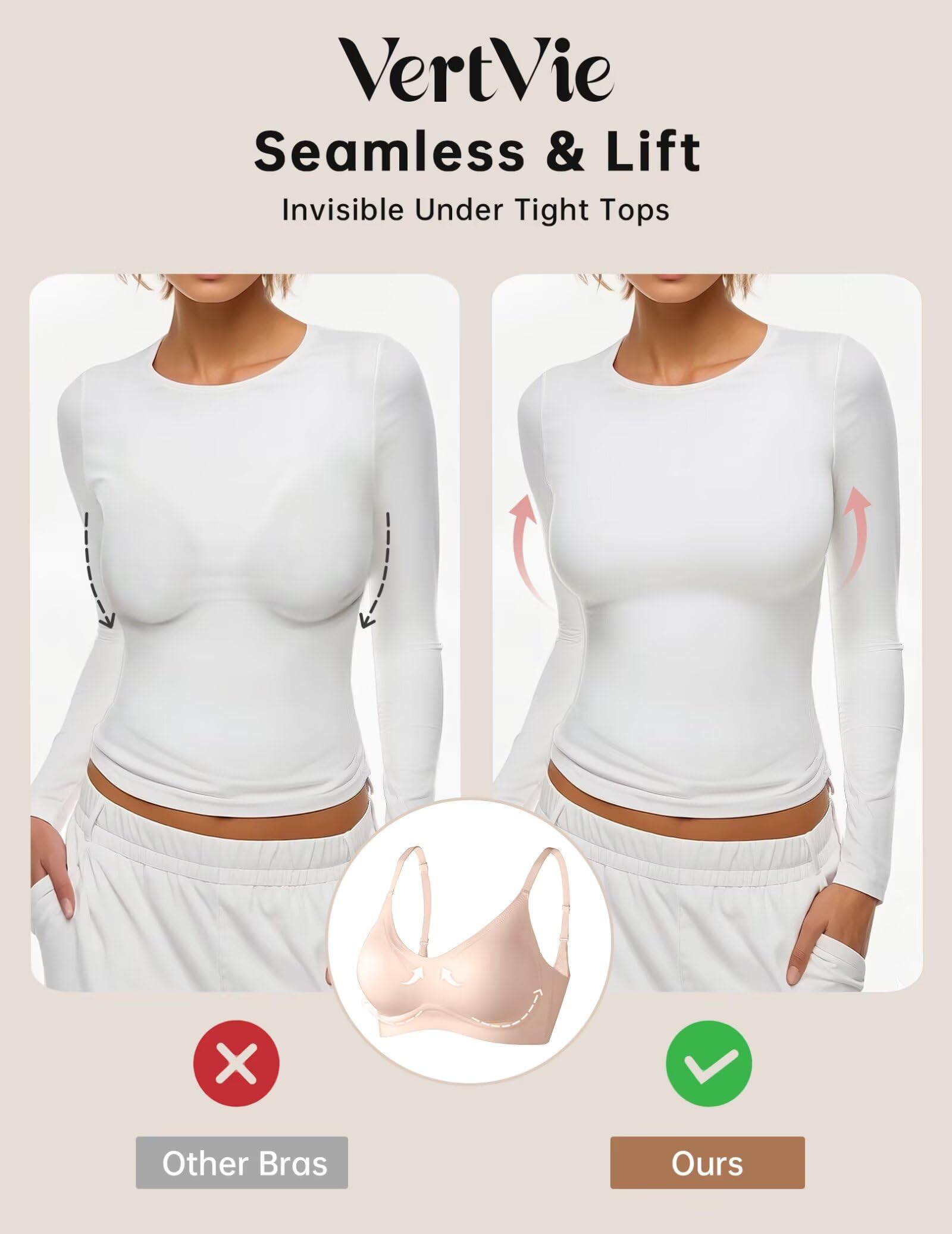【Seamless Sports Bra】 The bras for women no underwire provide full coverage, support and lift. The sexy V-neck design enhances your bust line. The bra pads are removable, so you can take them out as needed. This everyday T-shirt bra is lightweight, invisible, and non-see-through, hugging your chest perfectly to provide a smooth look under clothing