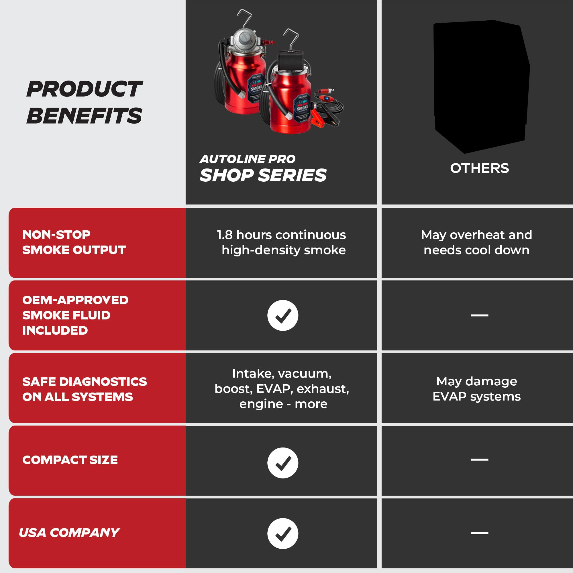 PRECISE AND SAFE: Engineered 100% safe for all vehicles. Thick Smoke output detects even the smallest leaks.
