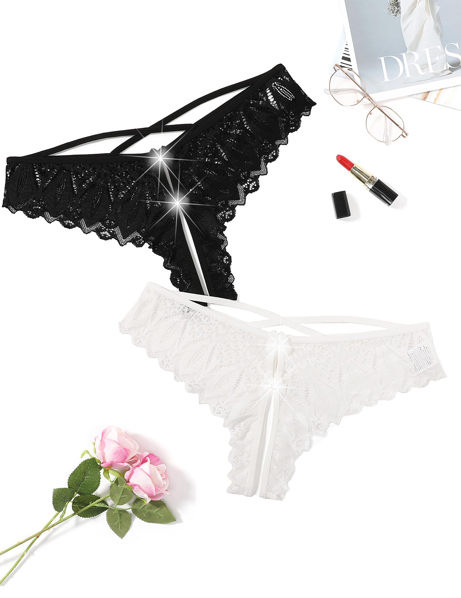 SUPREUM MATERIAL: This soft thong panties is made of 95% Polyester and 5% Spandex. Luxurious lace fabric for a sensual and elegant look