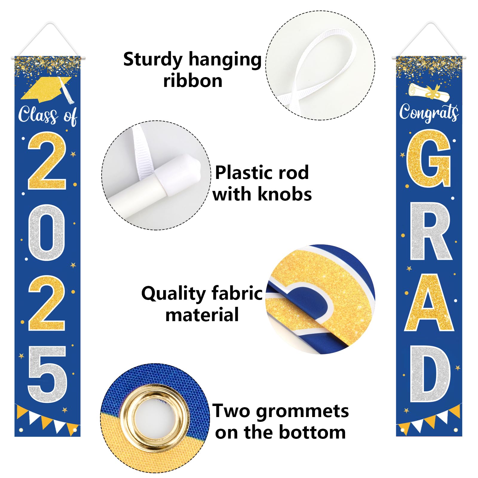 Graduation Decorations Banner: Easy but festive graduation decorations. Pre-assembled to decorate front door, porch, fireplace, garage, patio, home, office, indoor and outdoor easily.