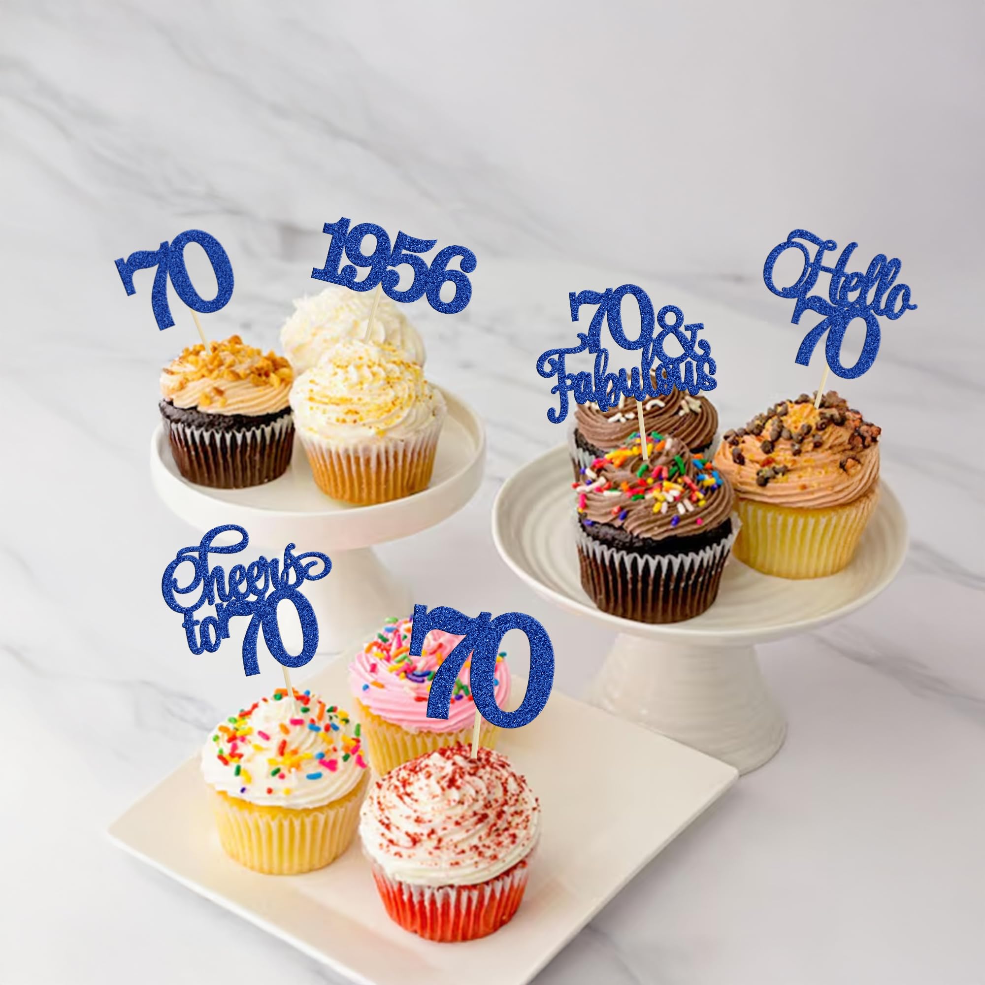--Package included: 30Pcs 70th Cupcake Toppers. Comes with assembled, so you can insert into your cake directly, which make your cake more interesting.
