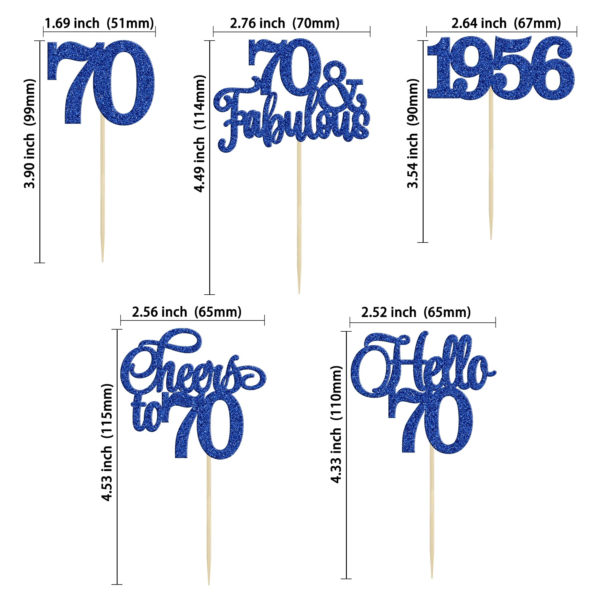 --Premium Material: These 70th Cupcake Toppers are made of high quality 300 gram card stock and food-grade toothpick, very safe to put them on cakes, cupcakes, ice cream, fruits, pie, dessert, cheese or any dish and food appetizer you want to decorate birthday party decorations.