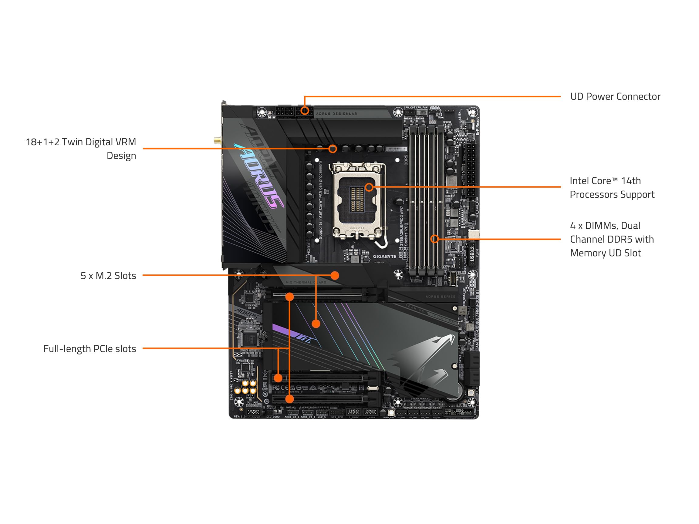 Introducing AORUS Z790 X Motherboards, the most powerful platform, built for the next generation of Intel Core processors. With leading performance in DDR5 memory, upgraded DIY innovation, and an all-new BIOS, AORUS Z790 X Motherboards are built to unleash next-gen power.