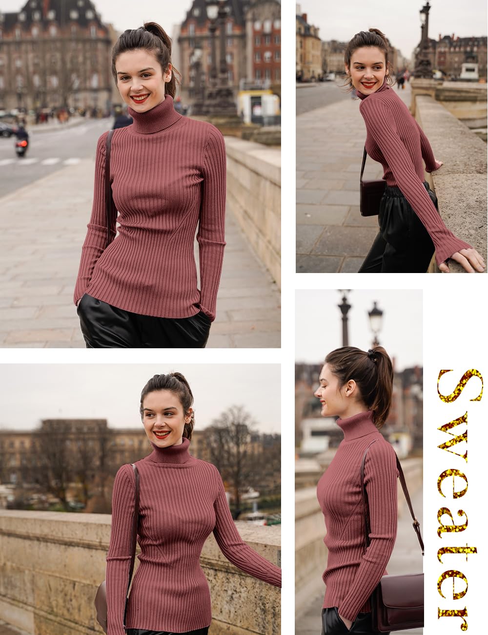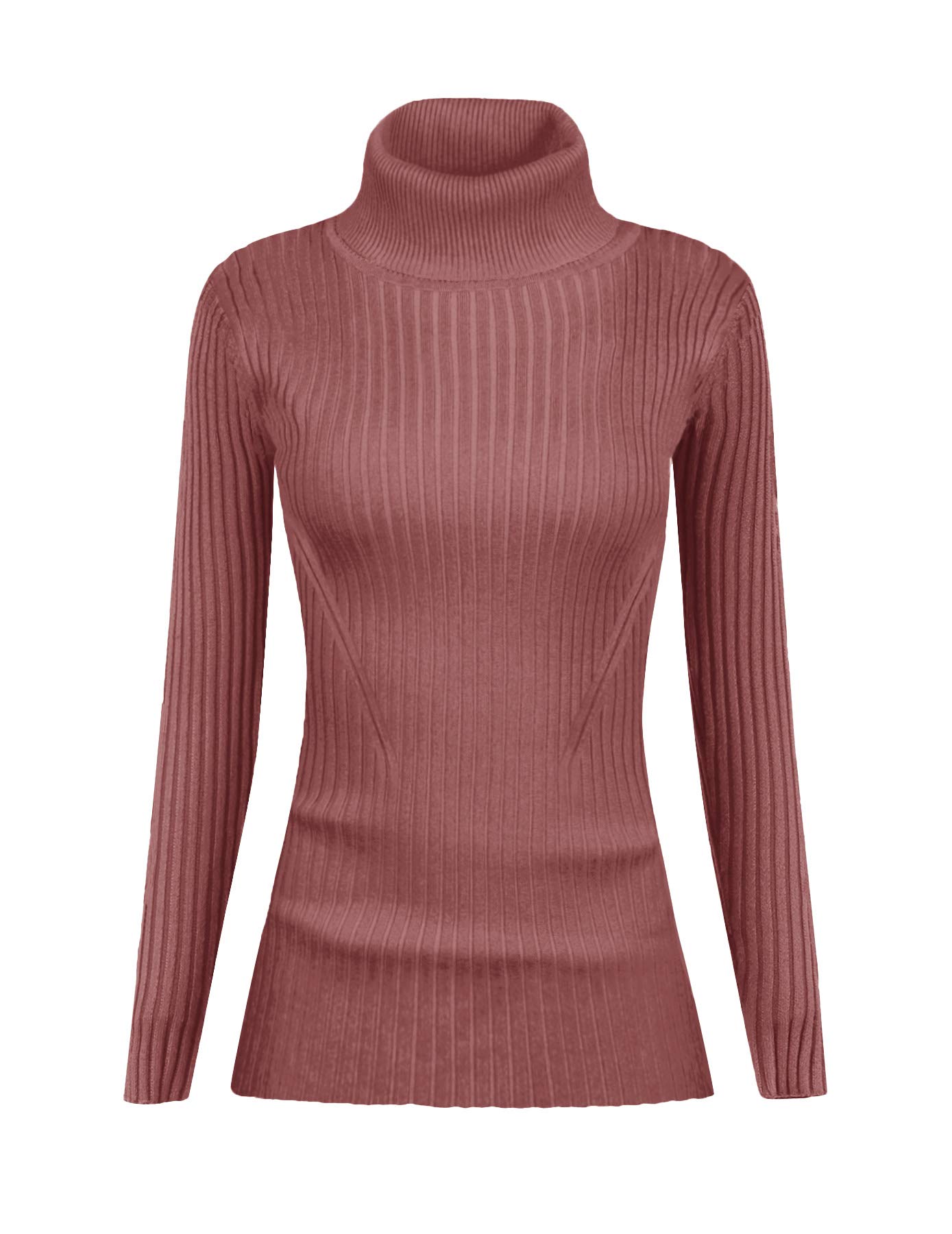 Turtle Neck Ribbed Sweater -- Knitted by Germany STROLL Machine to Ensure its High Quality Material: Highly Stretchable Viscose (Comfy Silky Smooth Feeling and Showing Off your Sexy Female Curve Silhouette)