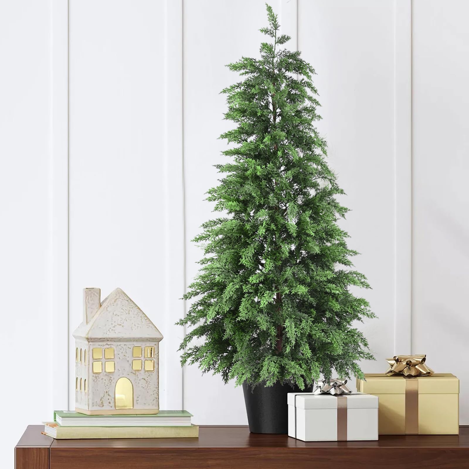 【 Natural Two-Tone Cedar – Authentic Color Layers】Designed with deep-to-light green gradients, our cedar needles replicate the natural tones of real cedar pine. This subtle two-tone blend avoids the flat plastic look, delivering vivid realism under any lighting.