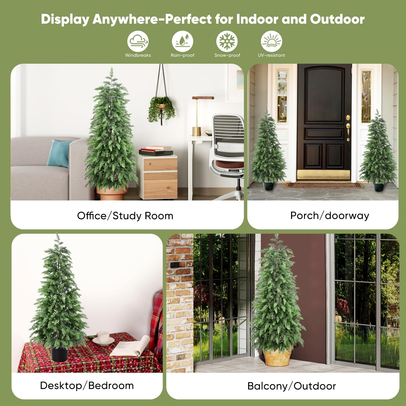 【Versatile Holiday & Everyday Decor】Perfect for balconies, gardens, rooftops, hotels, malls, and exhibitions. Adds natural vitality to any space and serves as an ideal Christmas centerpiece or seasonal accent.