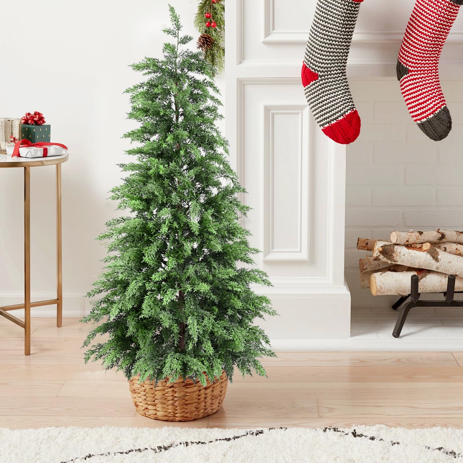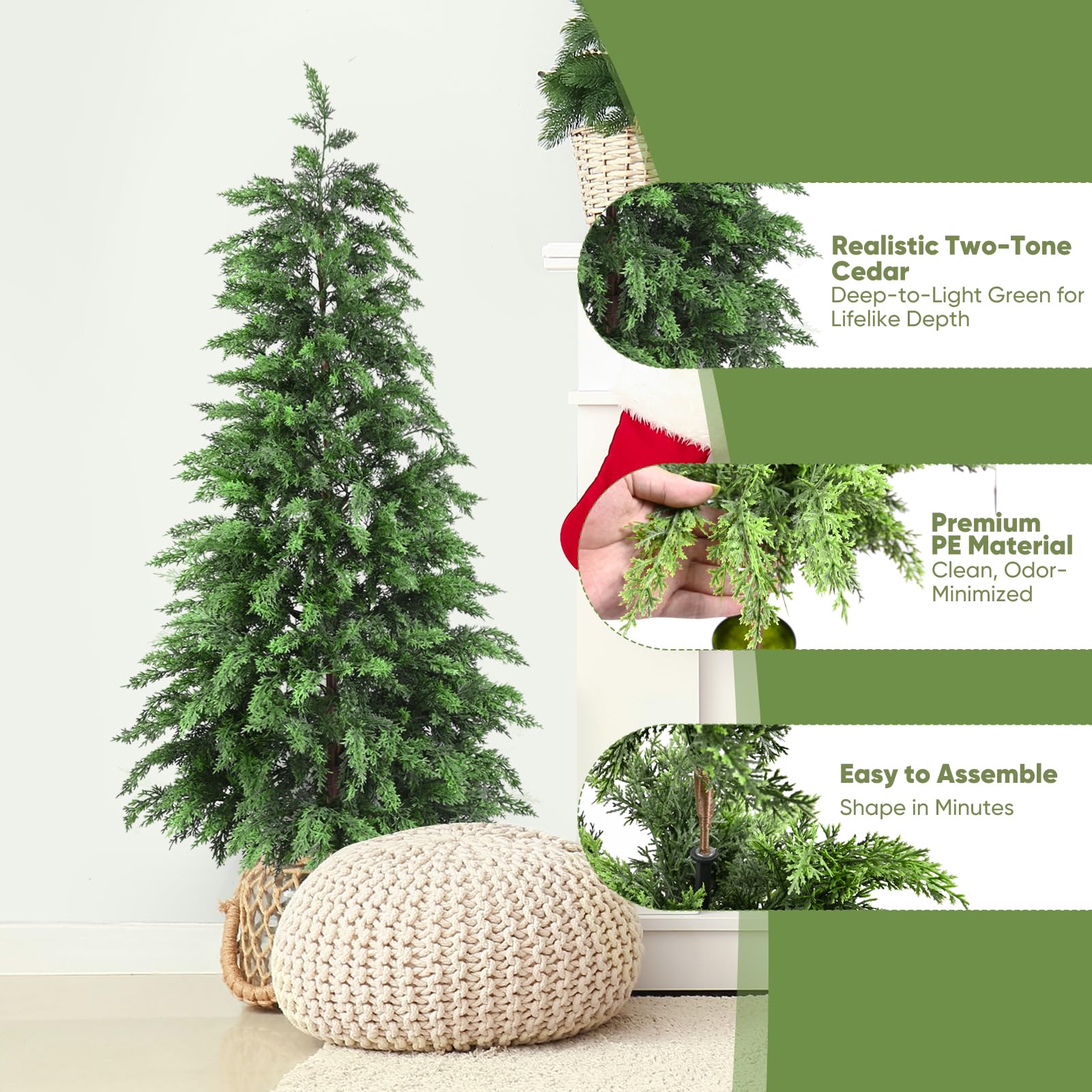 【Real Cedar Look & Feel – Lifelike Texture】Crafted with premium PE, every needle replicates the look and soft touch of real cedar, with a lifelike drape that won’t scratch your hands, creating a natural Christmas décor.
