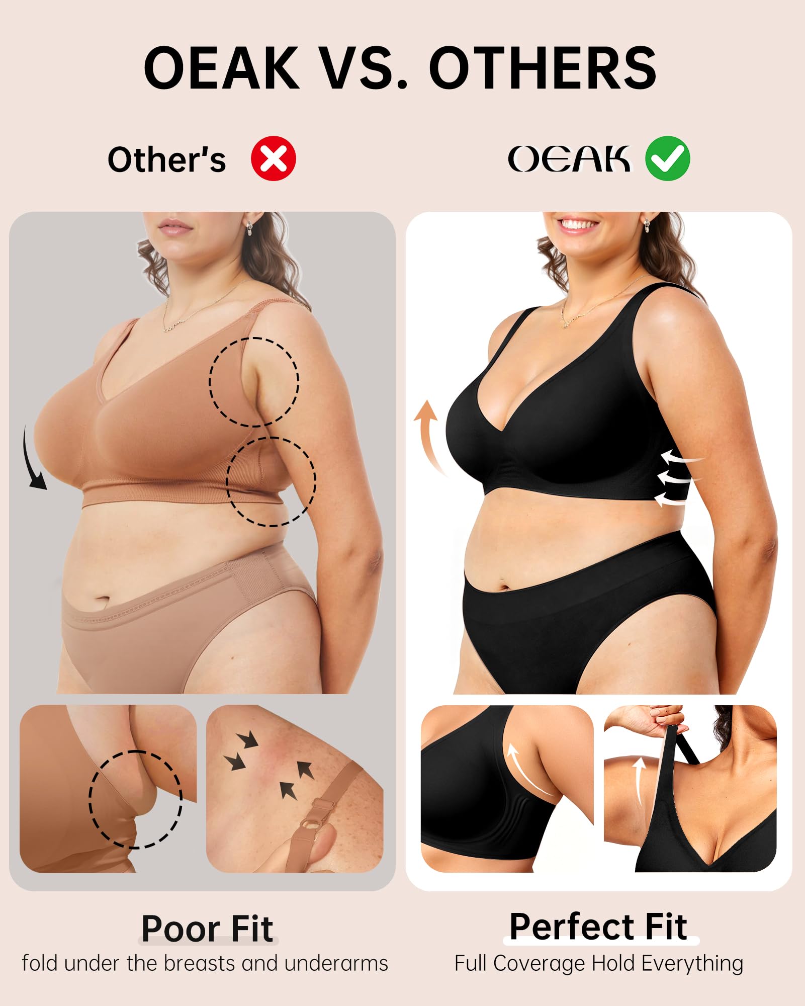 Stylish Deep V Bras for Women - The OEAK Wireless bra adopts a cute plunge design, which gathers and lifts your breasts, setting off the breast line to make your breasts more upright, round, and perfectly shaped. It showcases the seductive collarbones and cleavage under t-shirts and other clothing. The seamless Deep V bras are particularly effective in showcasing a beautiful neckline, making them ideal for wearing under low-cut tops and dresses, thus making your outfit simple and elegant.