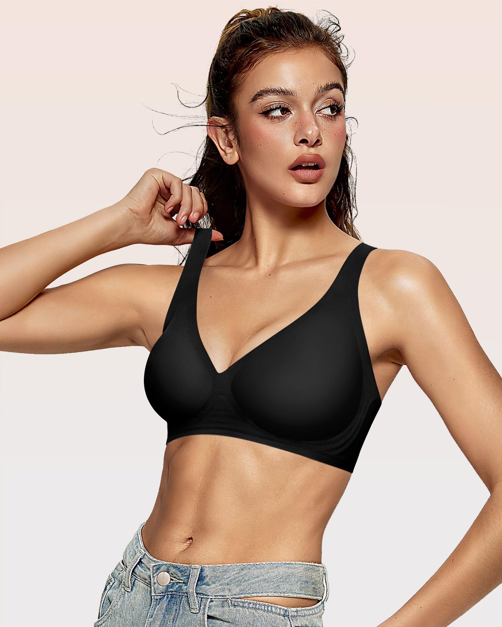 Ultra Soft and Comfortable Bras - These deep V bras with semi-fixed pads are made from high-quality fabric with a delicate texture, super breathable and gentle on the skin, providing a feather-light feeling with zero pressure. The highly stretchy design fits perfectly under your chest curve, effectively preventing the bra from slipping when lift your hands. Each semi-fixed pad has over 200 breathable holes, keeping you cool and comfortable for 24 hours.