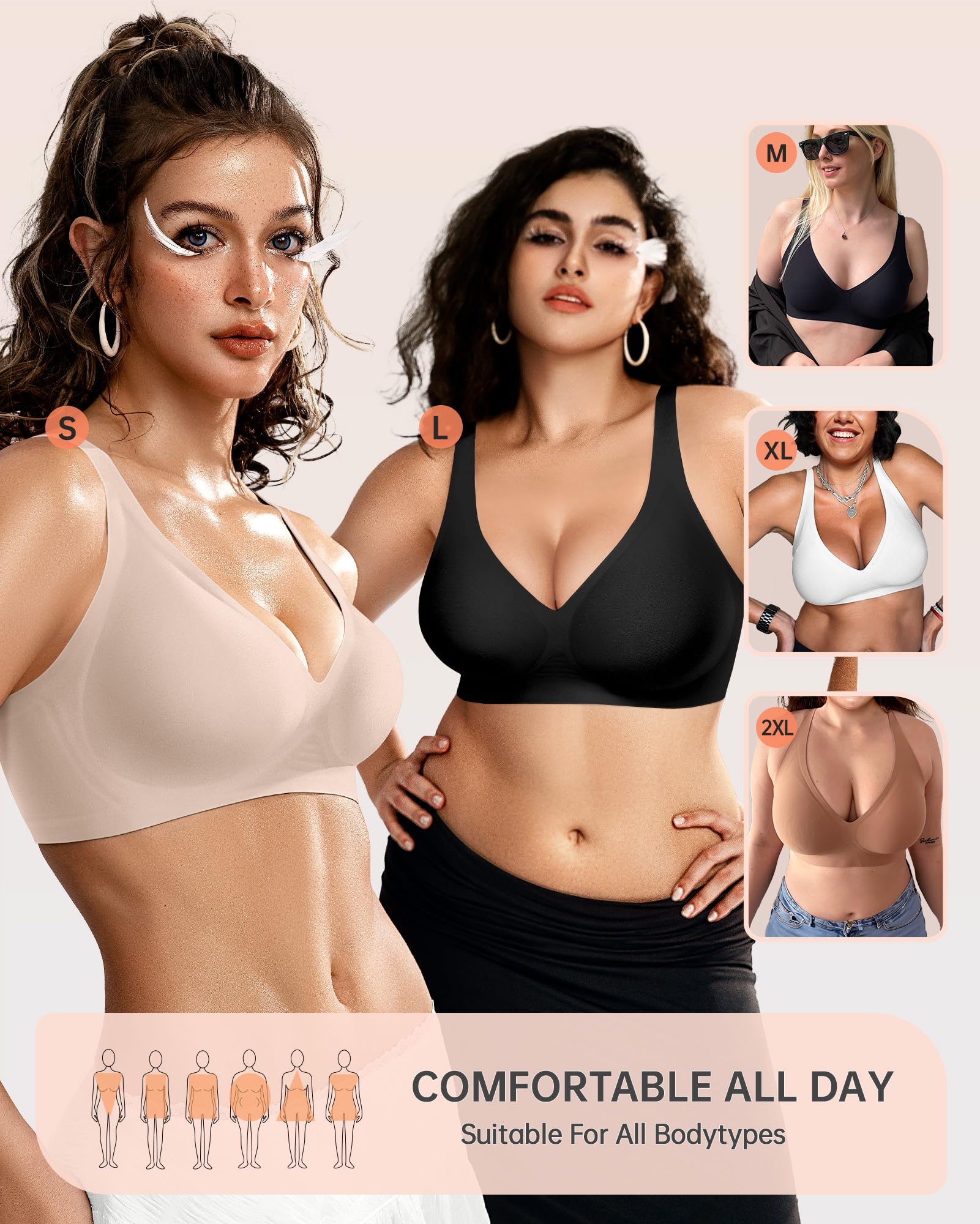 For All Occasion - These seamless bras ensure invisibility under clothing from tshirts to backless tops dress, giving you the freedom to mix and match with different styles. Ideal for all day wear, work, sleep, home, party, light exercise, dance, yoga. Please follow our size chart to choose the suitable size. Do not bleach. Do not tumble dry. Hang to dry.
