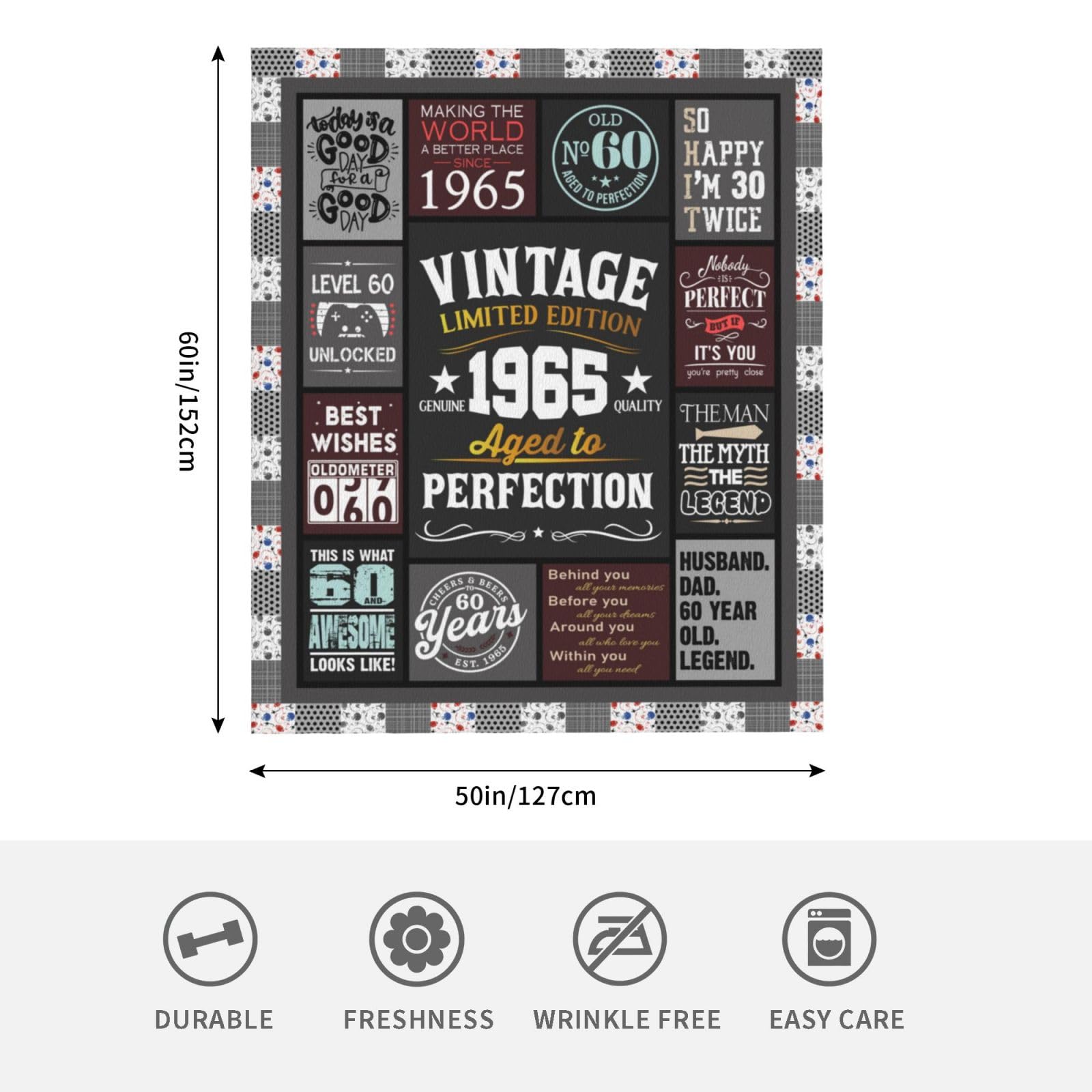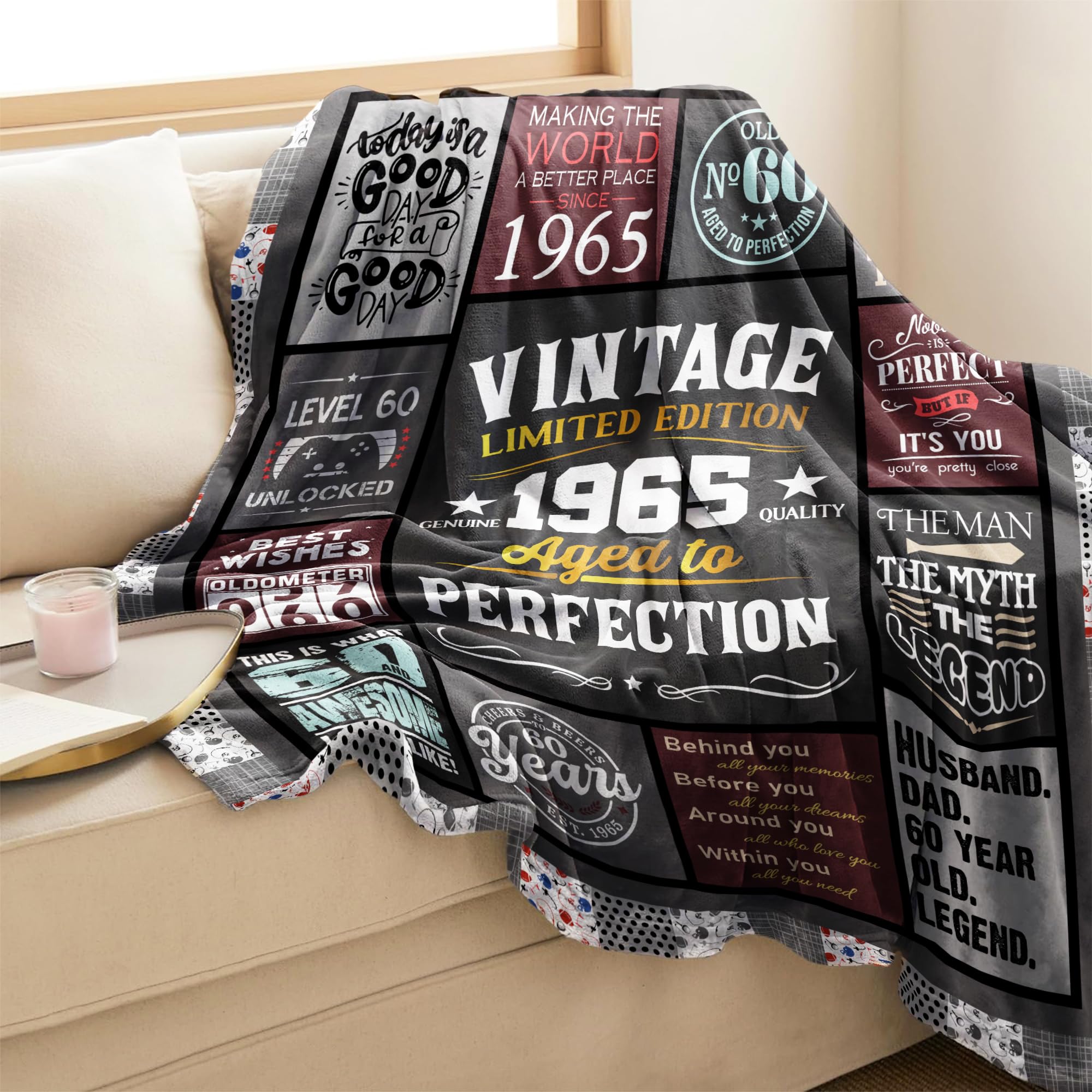 60th Birthday Gift for Men - Join in celebrating the exceptional 60-year-old man in your life. This milestone 60th birthday blanket features a unique, limited edition '1965' logo, symbolizing his birth year. It's a heartwarming surprise that honors his special journey and the memorable moments that define him.