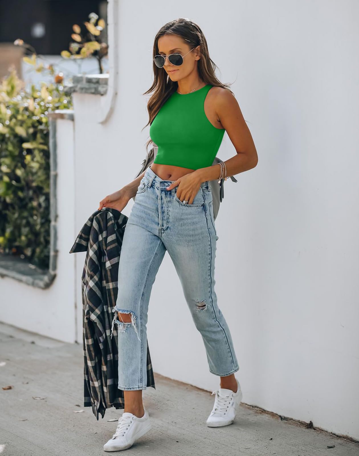 πΈDesign: This Trendy crop tank top is quite cute for teen girls and fashion women ladies, Features with high neck,halter neck,double line,racer back,cropped length,solid,tight slim fit,basic style which is bloggers favorite