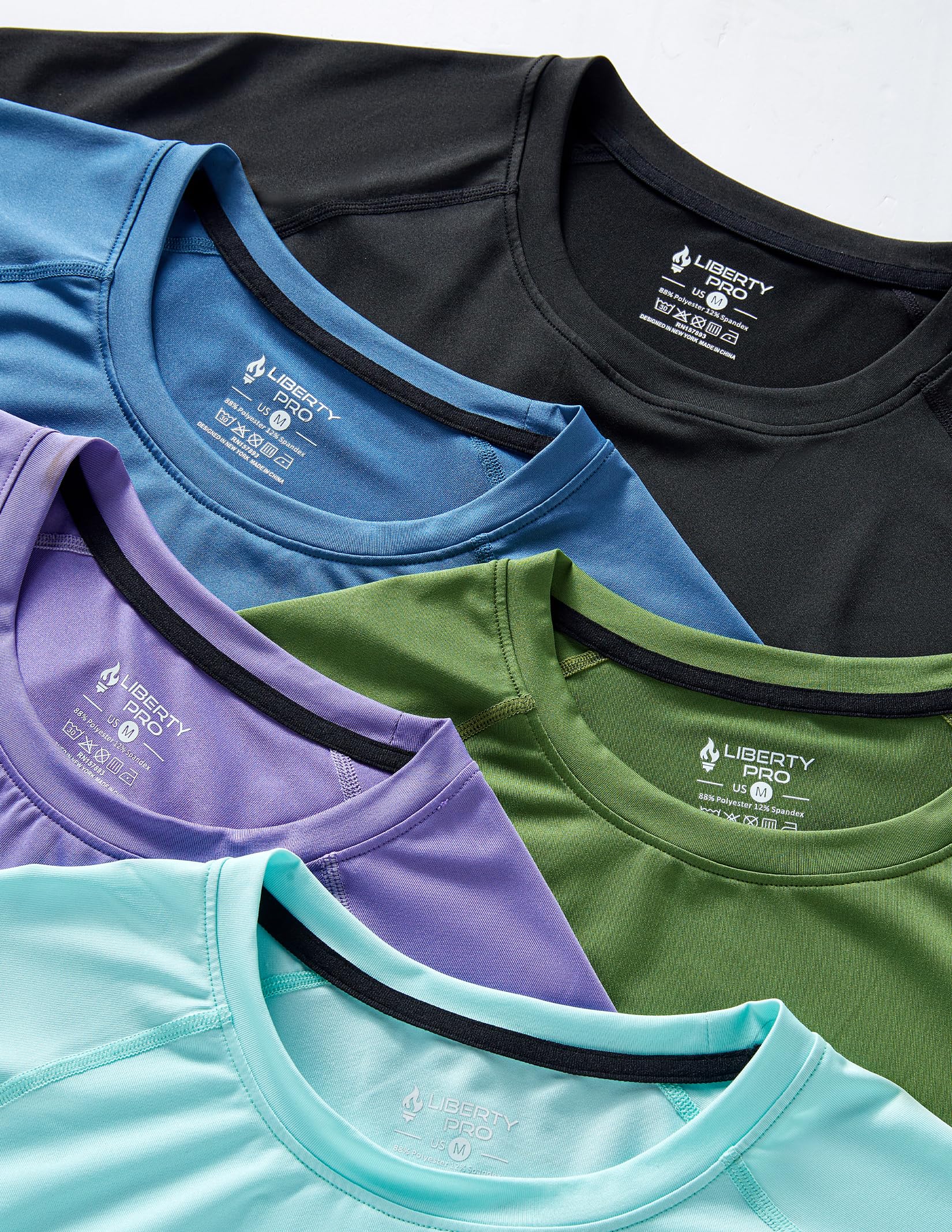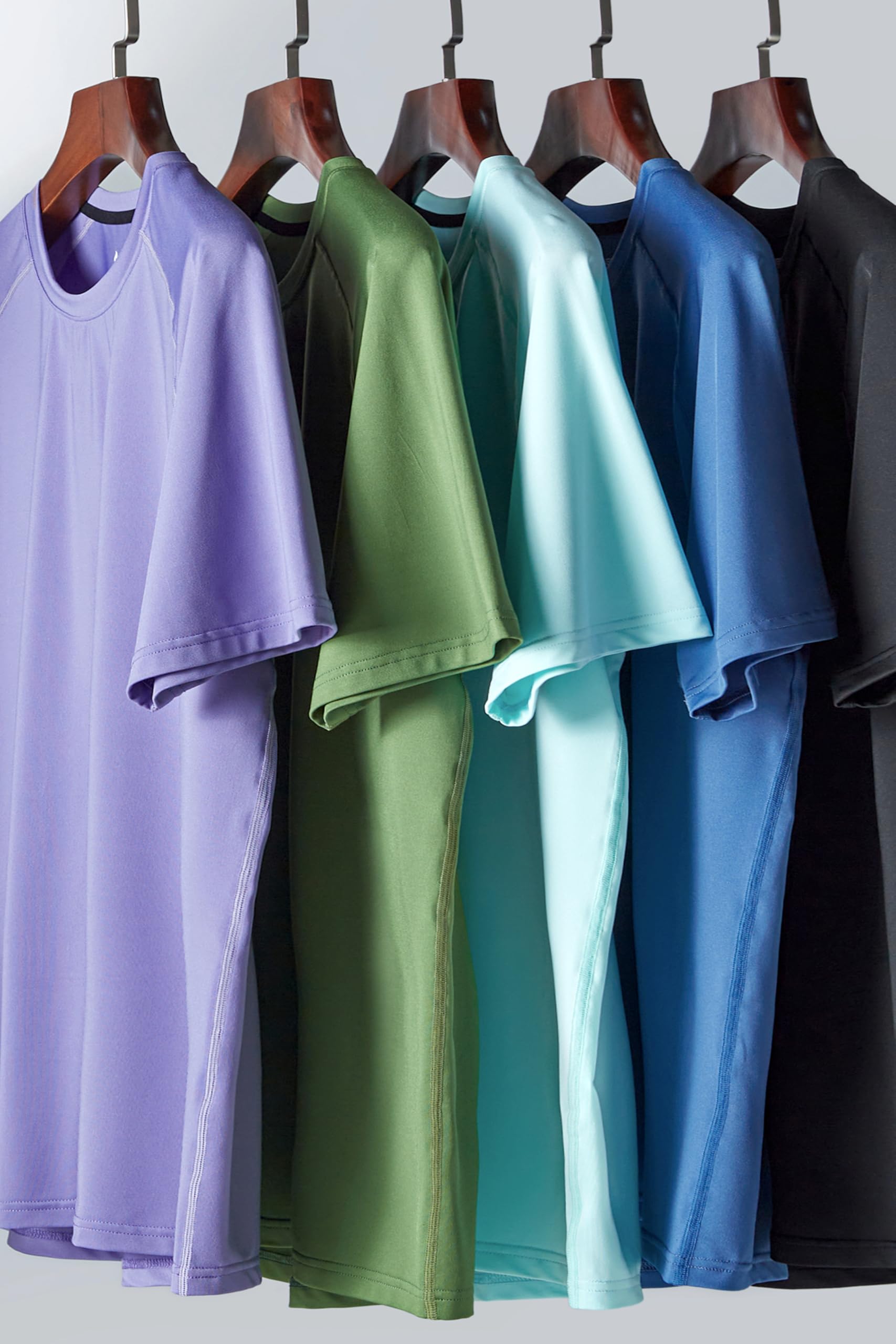ACTIVE STYLE: Look and feel great in the gym with our set of 5 premium athletic crewneck t-shirts in solid colors. Perfect for layering or wearing solo, these shirts will give you the confidence you need to crush your workouts and stand out in the gym.