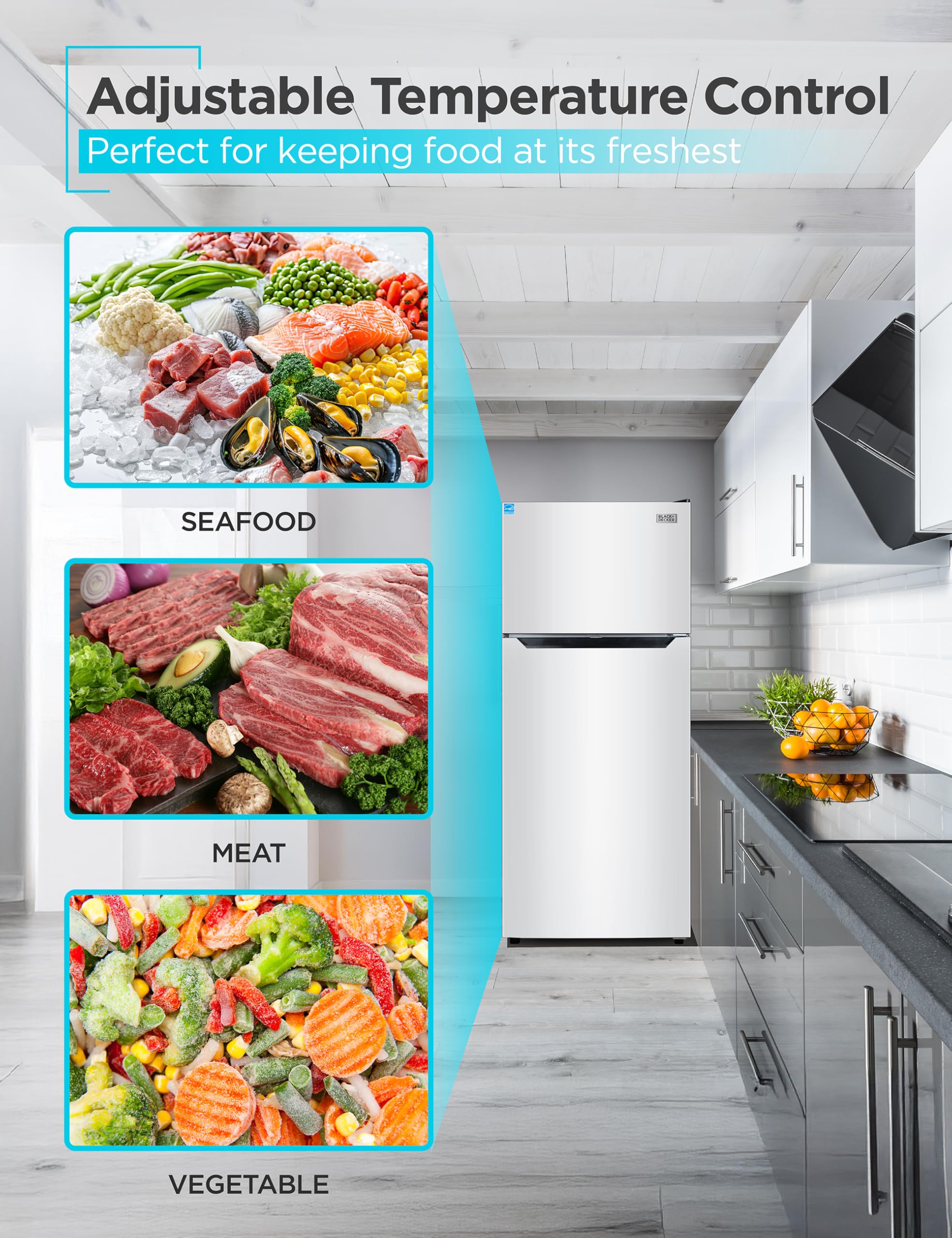 Adjustable Temperature Control: Maintain optimal freshness with the adjustable temperature control feature. Set the perfect cooling levels for both the refrigerator and top freezer sections
