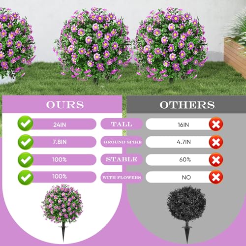 【Upgraded Deep Spike – Stronger Hold in Any Weather】Now featuring a newly upgraded 7.8-inch tapered spike, our artificial shrubs stay firmly anchored in soil, planters, or gravel—even in strong wind or heavy rain. The conical design ensures a secure, weather-resistant hold, making these faux bushes perfect for any outdoor setting, all year long.