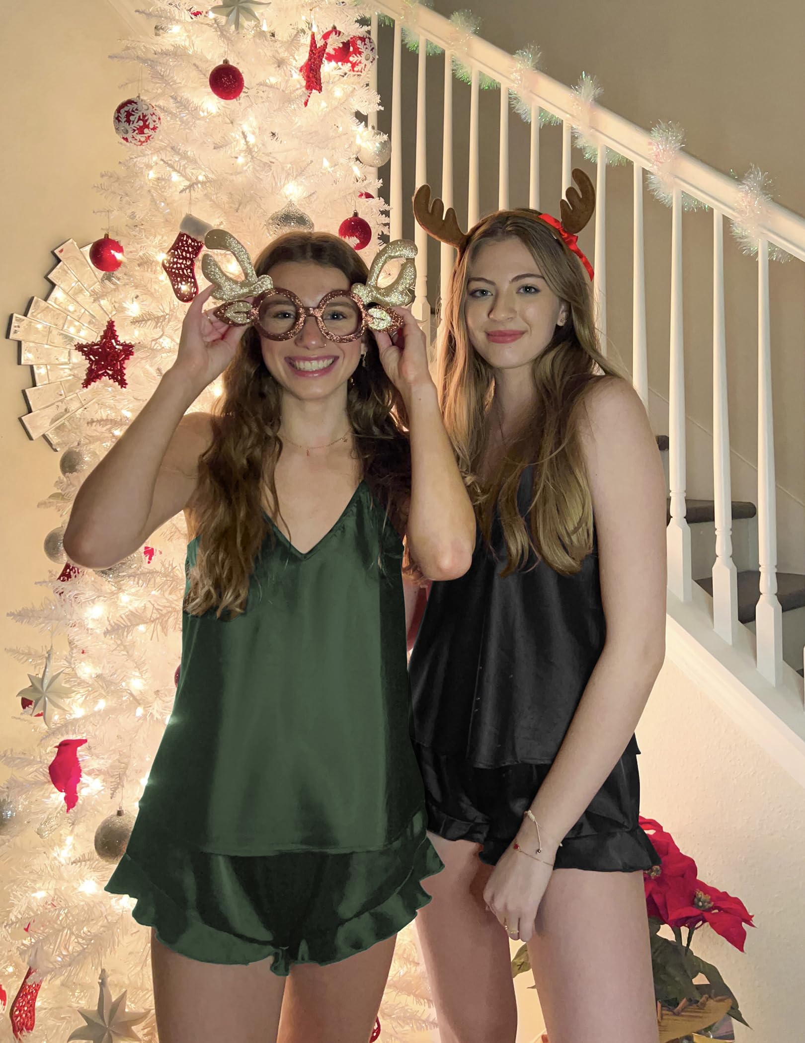 DESIGN&FEATURES: Silk camisole top: adjustable shoulder straps, V-neck, racerback. Bottom: ruffle hem booty shorts, high stretch elasticated trousers. The cute nightwear set with popular designs makes your family wander more comfortable and elegant.