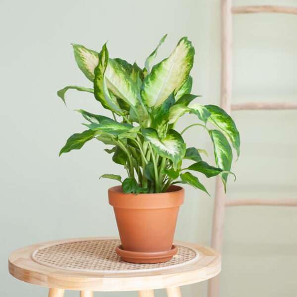 Meet dieffenbachia camille! Dieffenbachia Camille features large leaves with creamy yellowish-white centers and dark green edges. It thrives in a wide range of indoor environments, making it easy to care for.