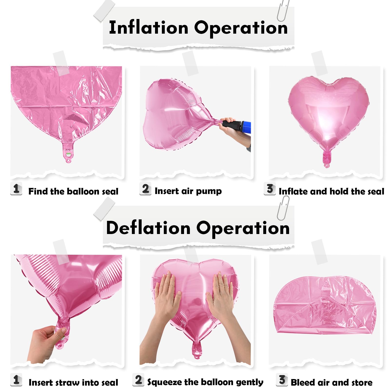 Easy to Use: The heart foil can inflate with helium or air, can be self-sealed. It is recommended to inflate to 80%-85% to prevent the balloon from bursting. Inflating with helium makes them float, enhancing the effect even more