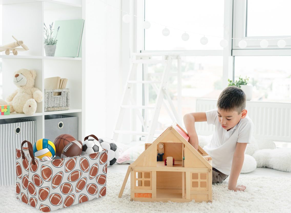 MATERIAL:Football basket made of linen & cotton fabric, waterproof PE coating inner, lightweight and durable.
