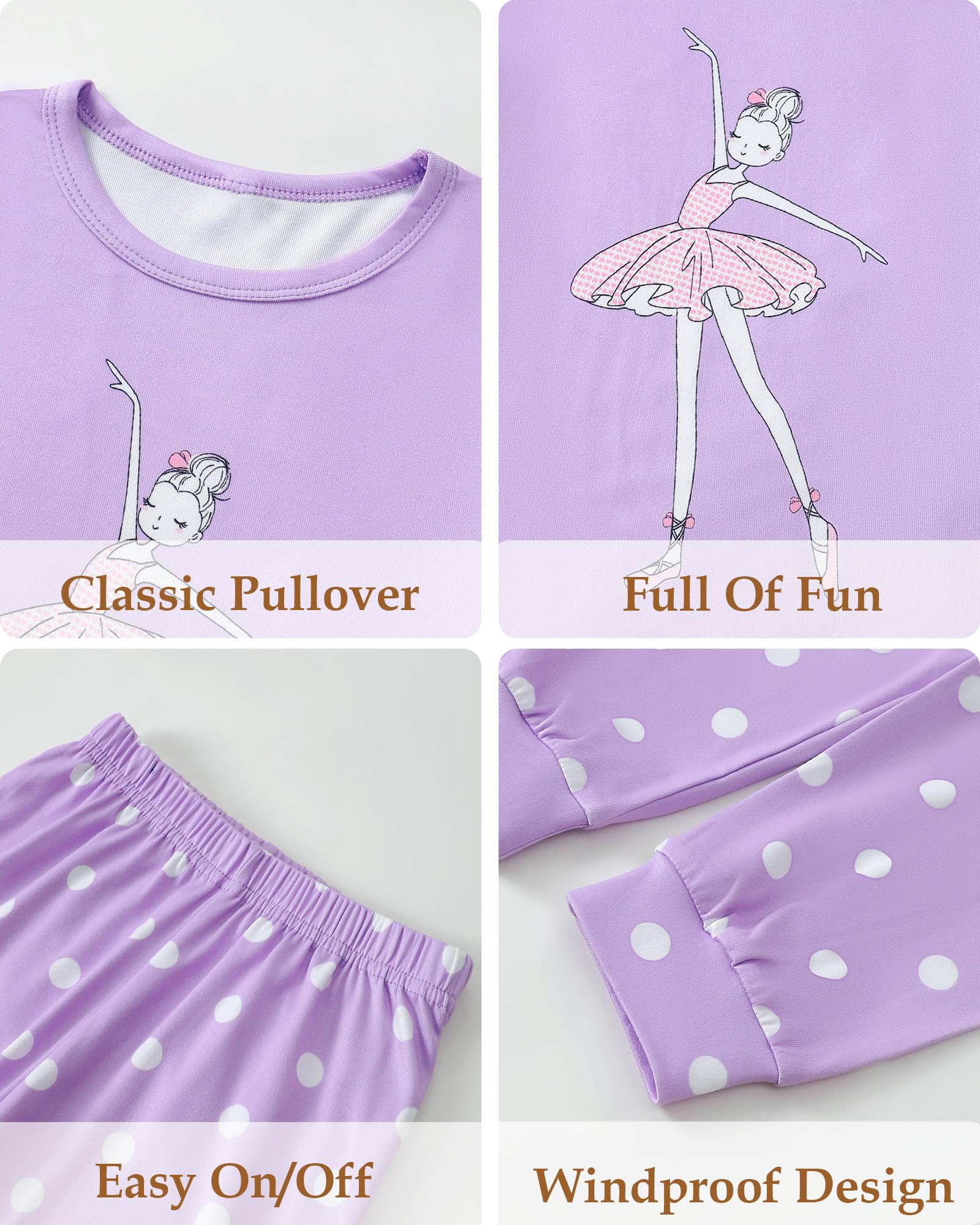 2-Piece Pajamas Set: This outfit includes long-sleeve tops and matching pants, printed with cute unicorn and cat patterns. The round-neck top and elastic-waist pants let kids move freely while keeping them comfy all night