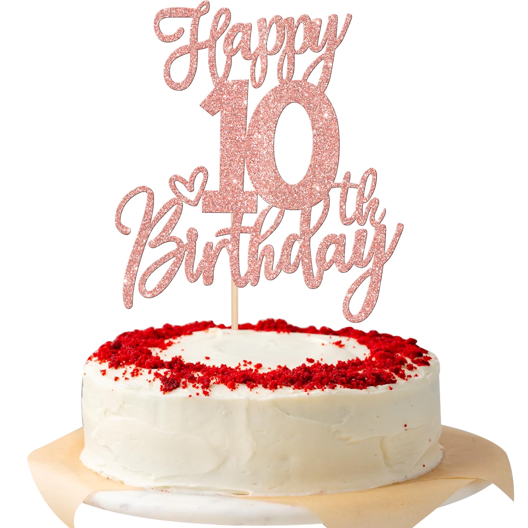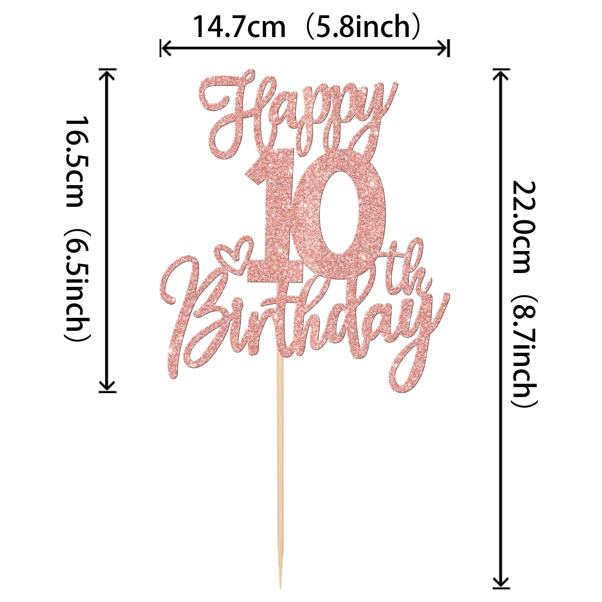 Happy 10th Birthday Cake Topper for Happy 10th Birthday Anniversary Theme Party Cake Decorations Supplies Perfect for happy 10th birthday theme party, cheers to 10 years party,10th wedding anniversary theme party, cheers to 10 years theme party cake decorations supplies. Pack of 1 pcs. The size is W 5.8 inch * H 8.7 inch / W 14.7 cm * H 22 cm ( with stick ) Made of high quality paper card stock and food grade sticks,thick and sturdy. This cake topper is one side glitter, another side is white, and this is intended for decoration only, please do not put them in oven or microwave. If the item you received has any defects, please contact us for refund.we will deal with it within 24 hours.