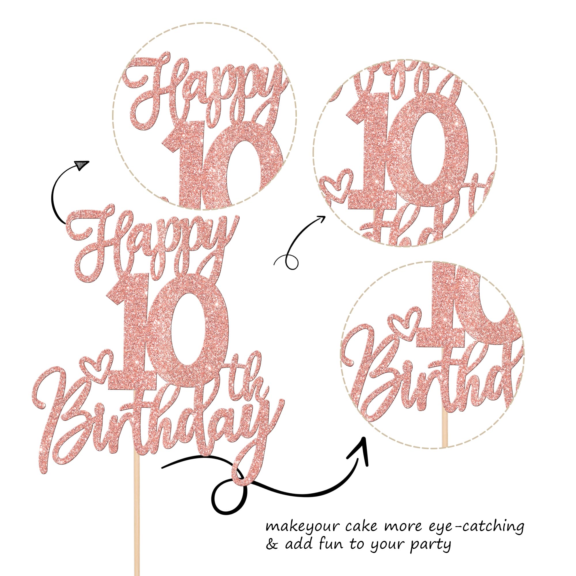 Wide Usages ! The happy 10h birthday cake topper is perfect for 10th birthday theme party,cheers to 10 years theme party, 10th anniversary theme party cake decorations,it can make your cake more attractive and bring the fun to your party.You can also apply them for ice cream, fruits, cookies and other desserts.