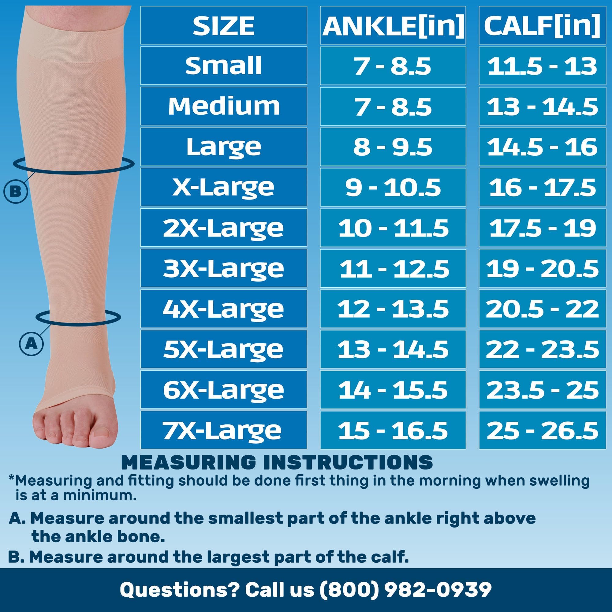 DETAILED SIZE CHART - Find your perfect fit with our comprehensive size chart, factoring in both calf and ankle sizes.