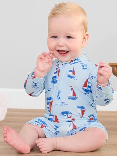 Description This 2-Pack One-Piece Long Sleeve Zip-Up Rashguard Swimsuit for Boys from Simple Joys by Carter’s combines comfort, protection, and playful style for the ultimate summer gear. Designed with fun, vibrant prints and colors, it will keep your little one excited for every swim. The UPF 50 rating offers excellent sun protection, ensuring that they stay safe from harmful UV rays while enjoying the outdoors. Featuring a full zip closure for easy on-and-off, this swimsuit provides a snug fit with added convenience. The long sleeves provide extra coverage, making it perfect for days at the beach, pool, or any water activity. Whether splashing around or lounging under the sun, this rashguard swimsuit is the ideal choice for active boys who love to make a splash!