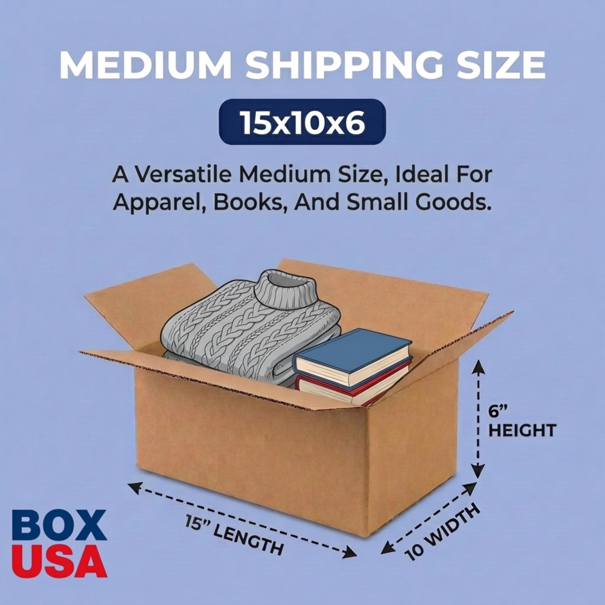 BOX USA moving boxes are designed for packing and transporting household or business items during moves, storage, or shipping. Made from corrugated cardboard, these cartons provide structure for packing books, clothing, kitchen items, office supplies, and other belongings. The boxes ship flat for efficient storage before use and assemble quickly when ready to pack. Suitable for packing fragile items when used with proper cushioning materials. Manufactured in the USA from recyclable kraft corrugated cardboard.
