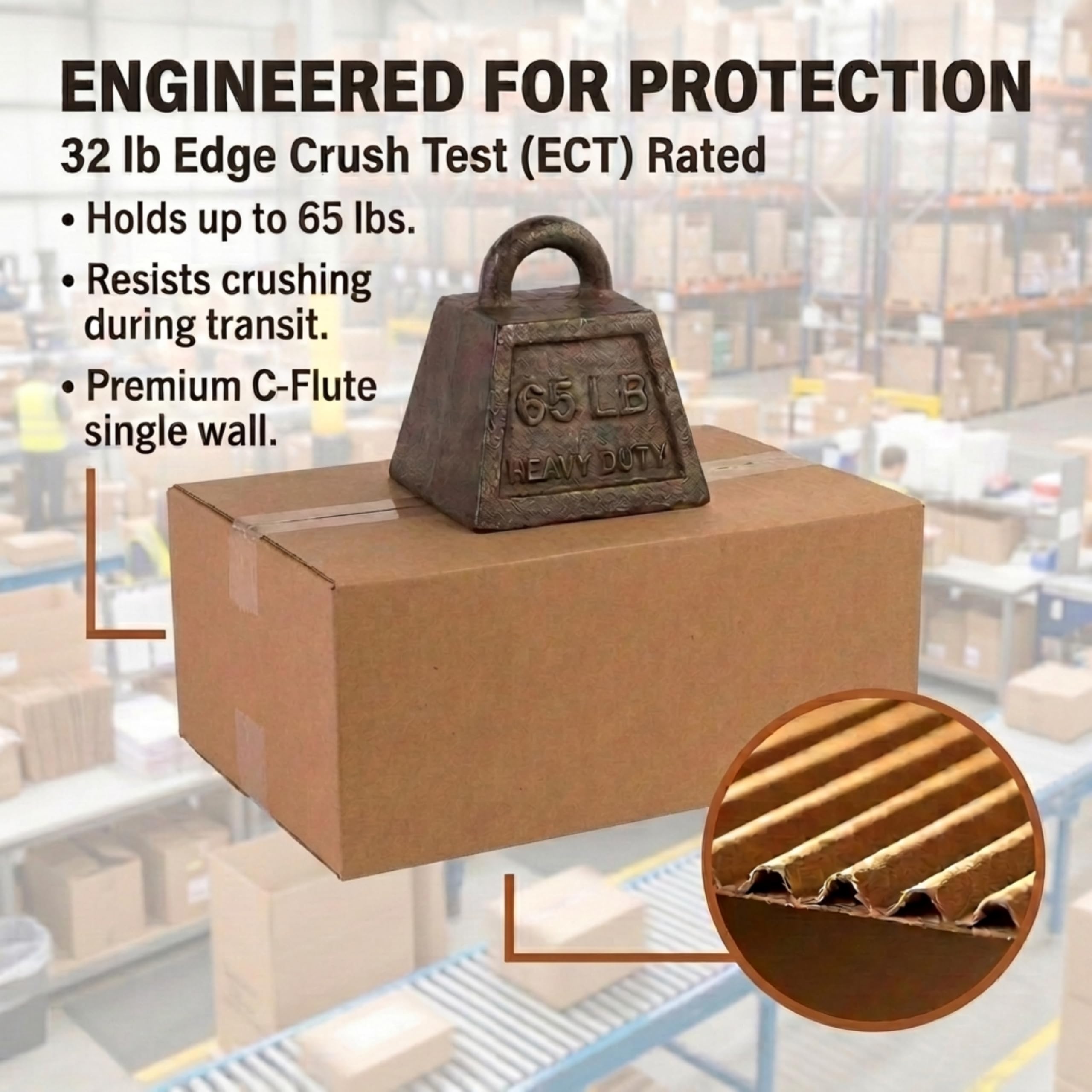 STRONG CORRUGATED BOXES FOR HEAVY ITEMS – Made from durable 32-ECT corrugated cardboard that supports up to 65 lbs when properly packed. These moving cartons help protect books, kitchenware, tools, and household items during transport or storage.
