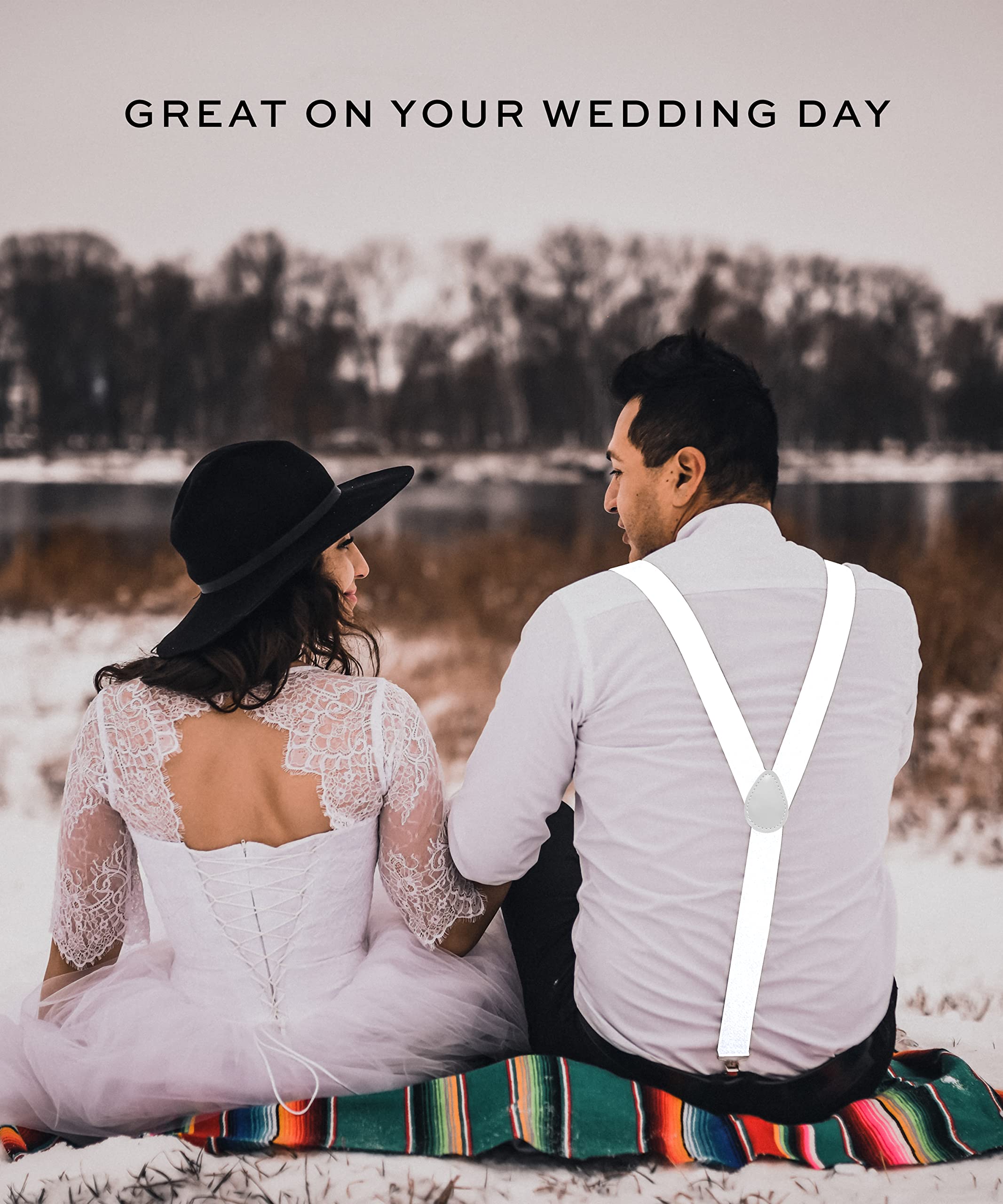 PERFECT FOR ANY OCCASION - Suspenders for men intended for any pants or trousers from a work suit to a wedding tuxedo "Y" Back construction for EXTRA COMFORT features a LEATHER sewn in patch to insure long life.