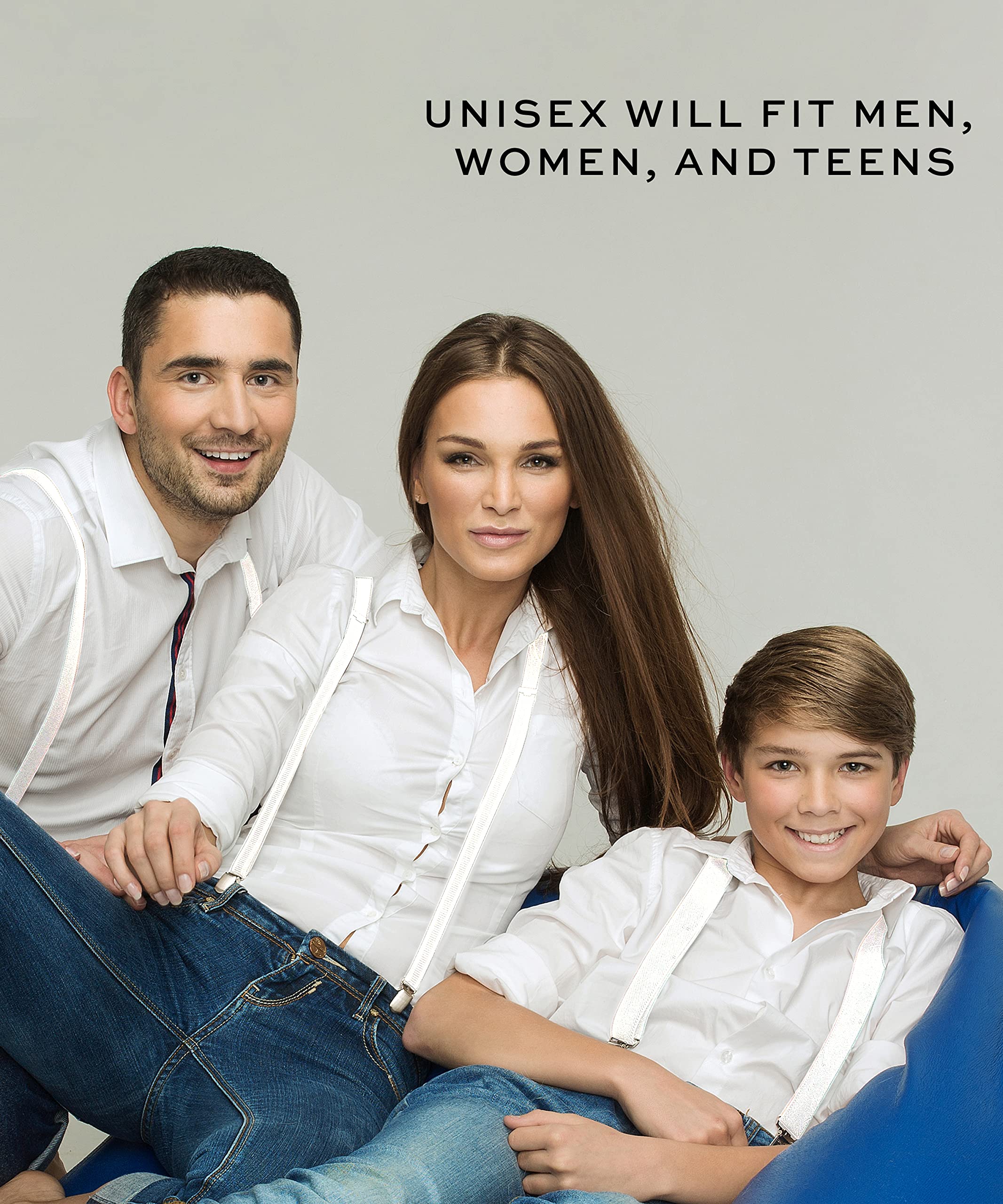 ONE SIZE FITS MOST - Perfect for the (almost) entire family! These suspenders fit men, women, and teens / young adults. Wear these unisex suspenders with confidence in your fancy tuxedo dress trousers or your most comfortable pair of jeans.