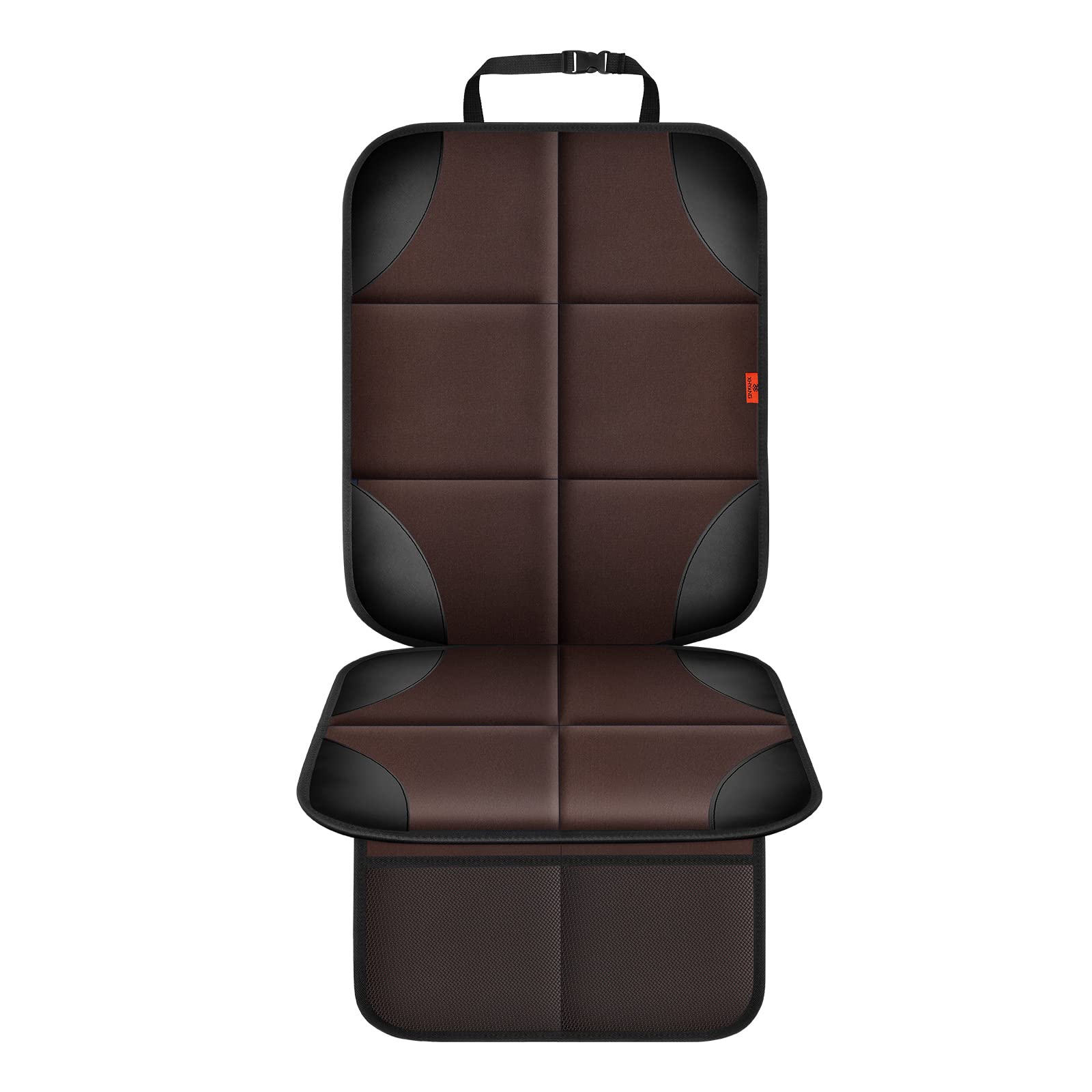 ANTI-SLIP DESIGN & ADJUST STRAPS:Non-skid material on top and bottom to prevent car seat from shifting,Securely fasten them to achieve a perfect fit. Forget about seat protectors sliding off the seat,The car seat mat has adjustable safety straps that will tie the cover securely to the headrest. Securely fasten them to achieve a perfect fit