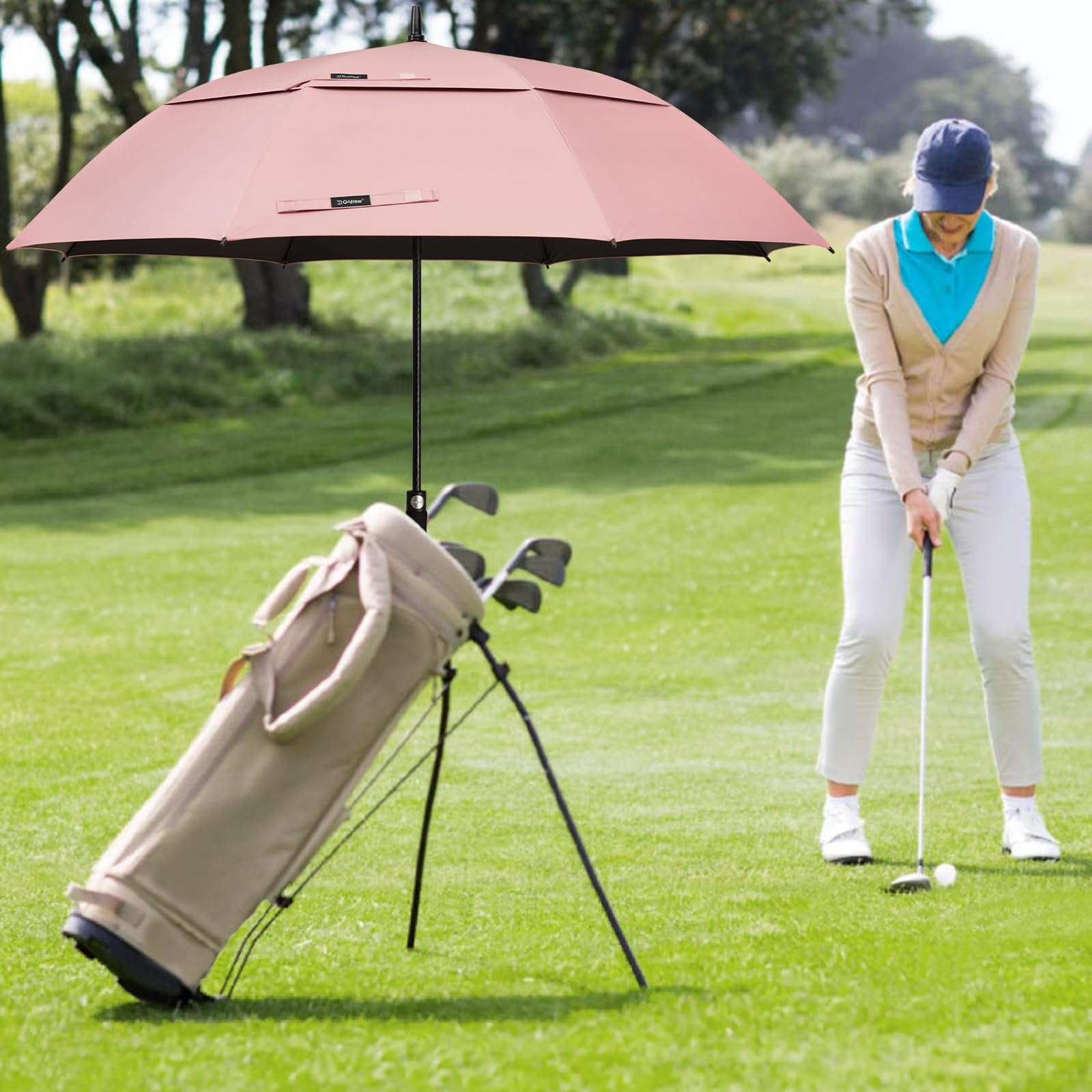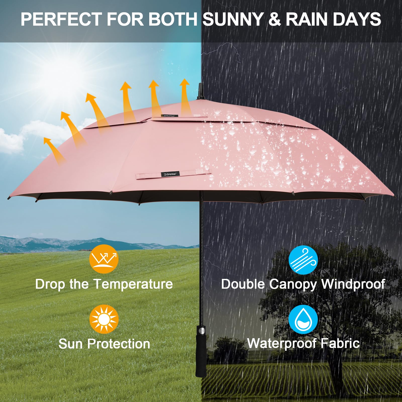 G4Free 62 Inch UV Protection Golf Umbrella Auto Open Vented Double Canopy Oversize Extra Large Windproof Sun Rain Umbrellas (Dusty Rose/Black)