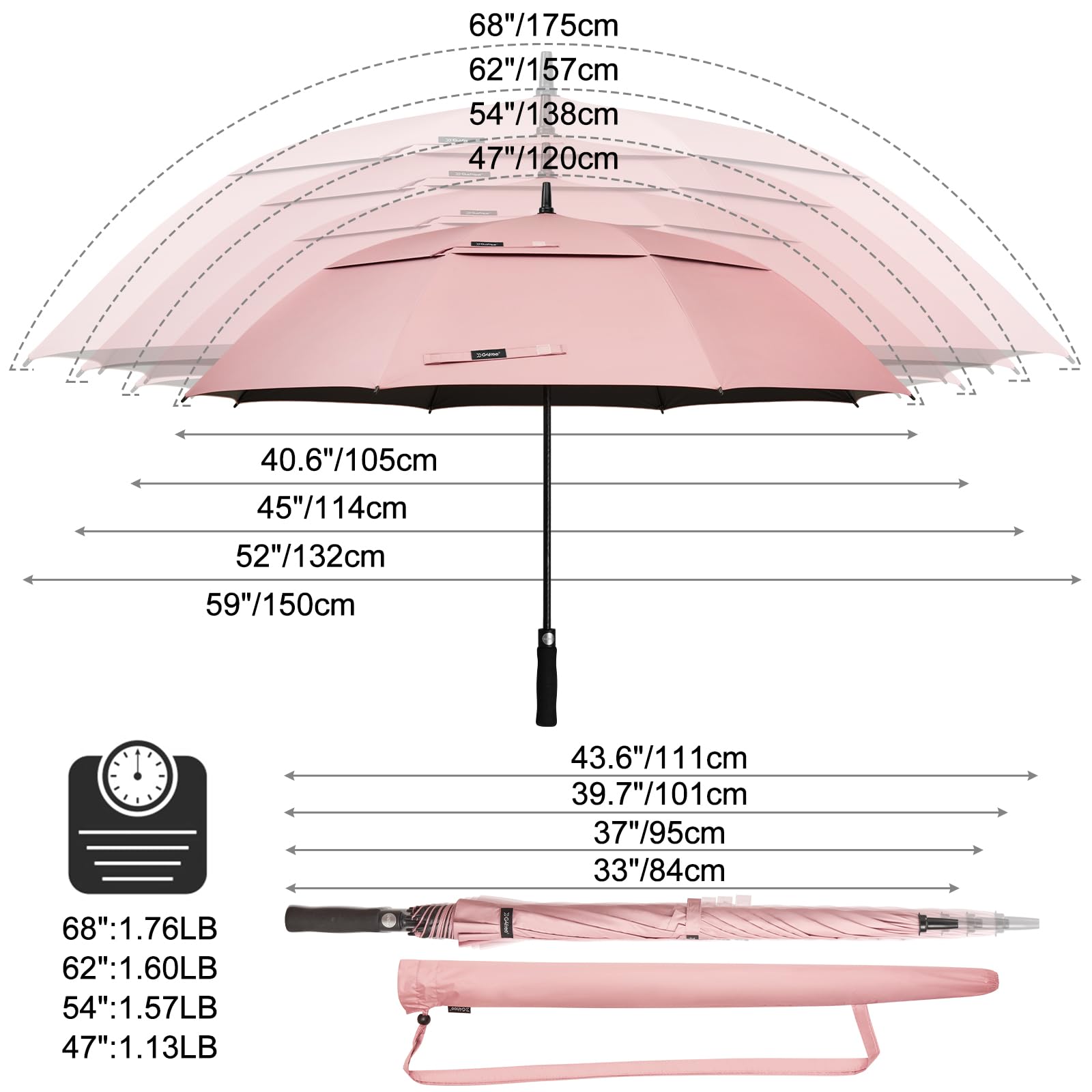 62 Inch Extra Large Umbrella. 62" arc, 52" diameter, this G4Free oversize umbrella is big enough to protect 2-3 people or more. Suitable for men and women, family or lovers!