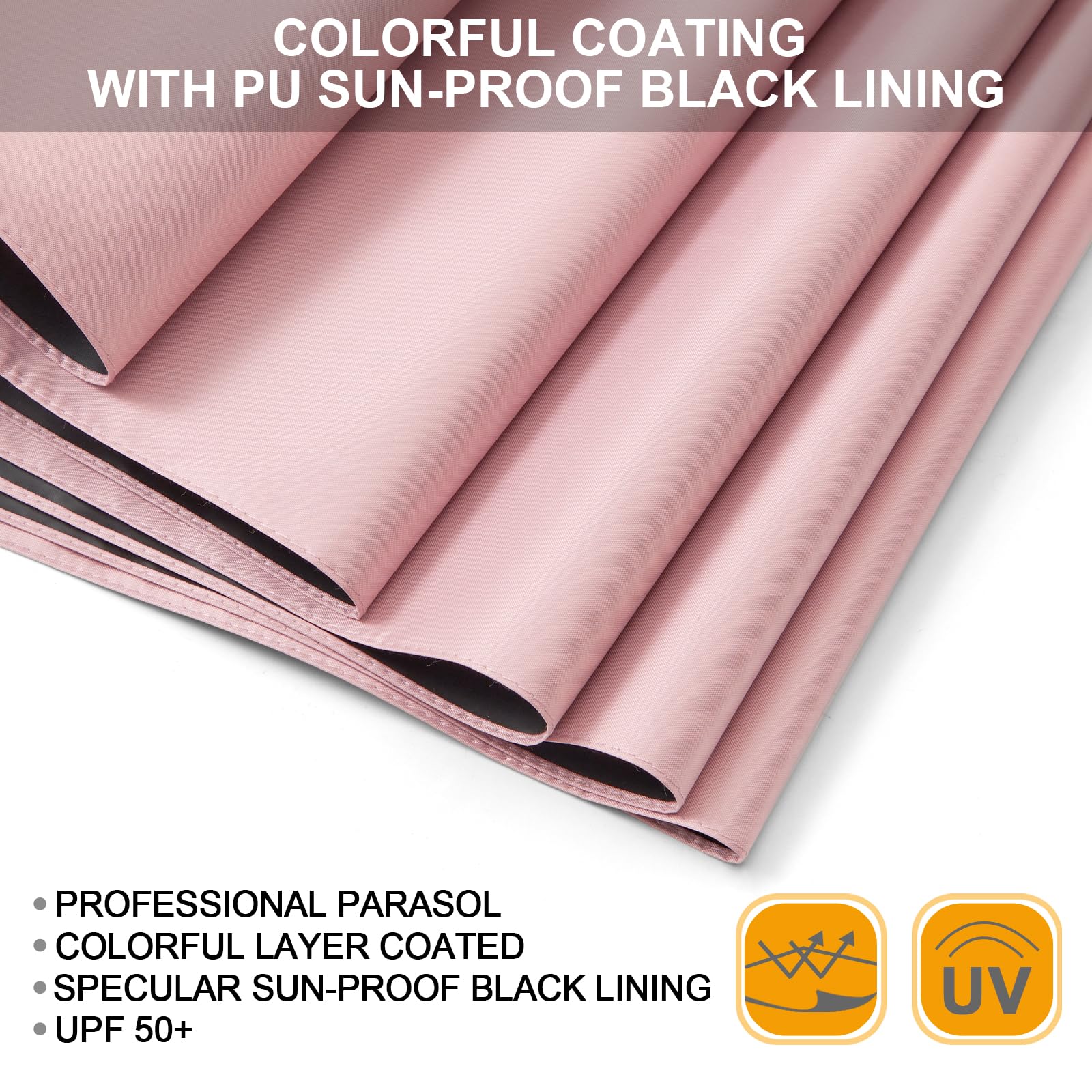 UPF 50+ UV Protection Umbrella. 100% polyester canopy with black PU coating that reflects heat and cools you down. 50+ UPF rating to block 99% of the sun’s harmful UVA and UVB solar rays. Keep you cool in the sun and safe in the rain!