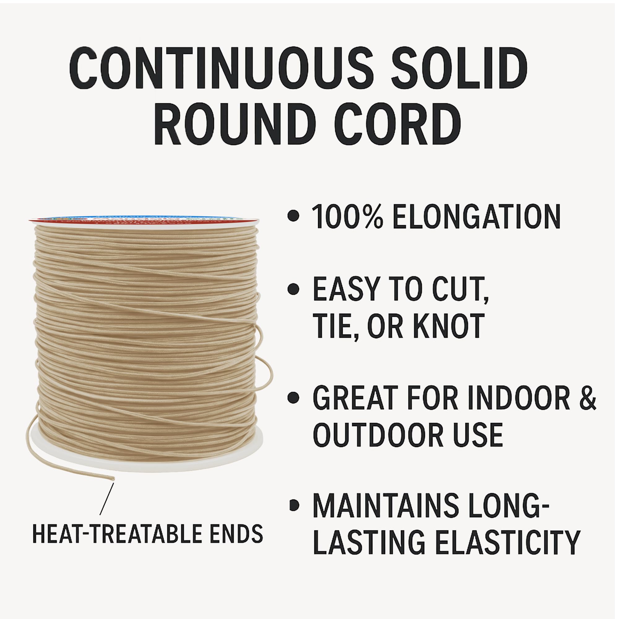 Khaki Round Elastic Cording: The soft & flexible thin elastic cord made from nylon & rubber is colorfast, washable, & dryable. As strong as rubber string, the elastic rope cord serves as durable stretchy sewing string and elastic craft string.