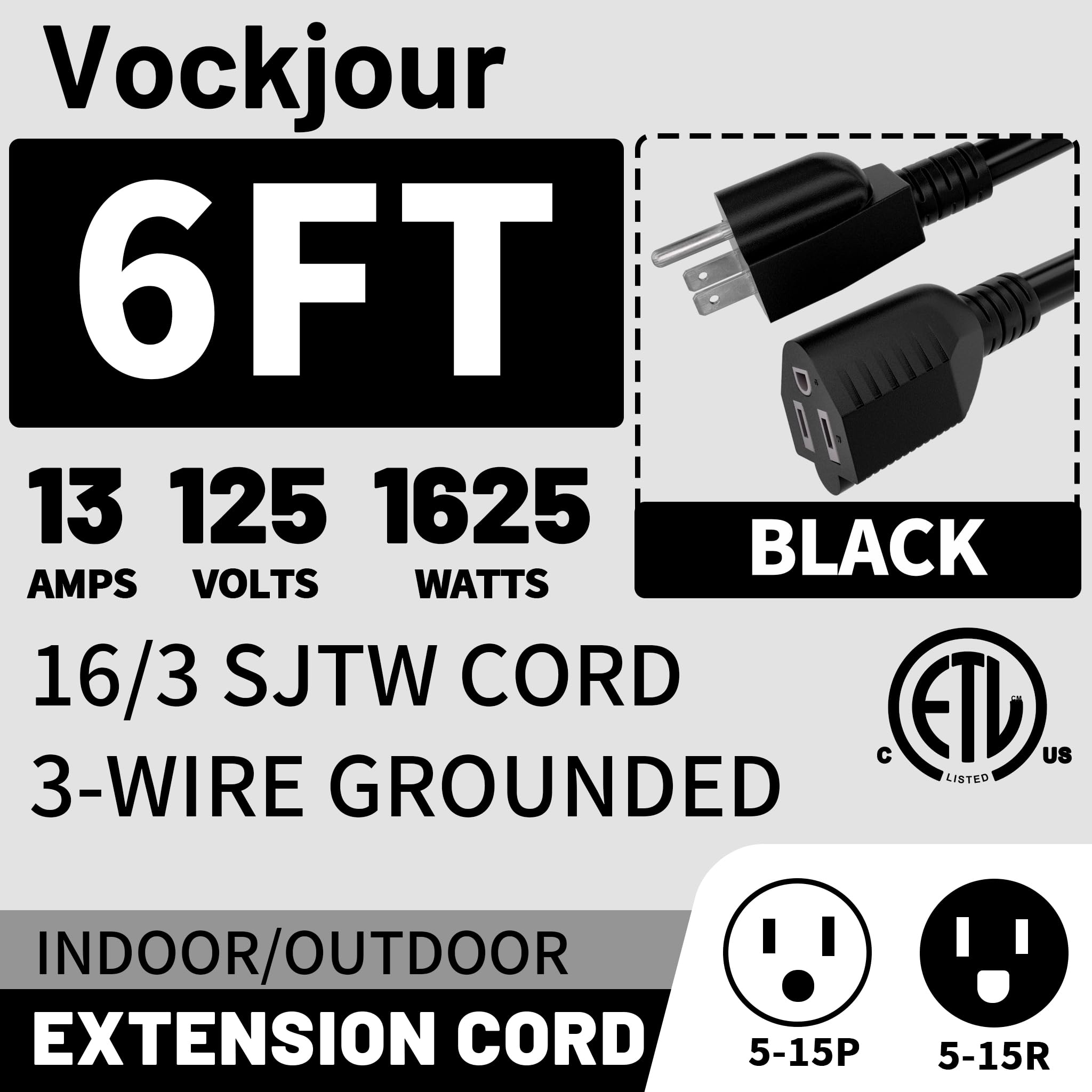 Multiple applications: 6ft indoor outdoor extension cord is commonly used for small appliances, offices, DIY power tools, TVs, stereos, lamps, and a variety of other devices, and the Black extension cord 6 ft is also great for camping, picnics, and other outdoor activities that require power