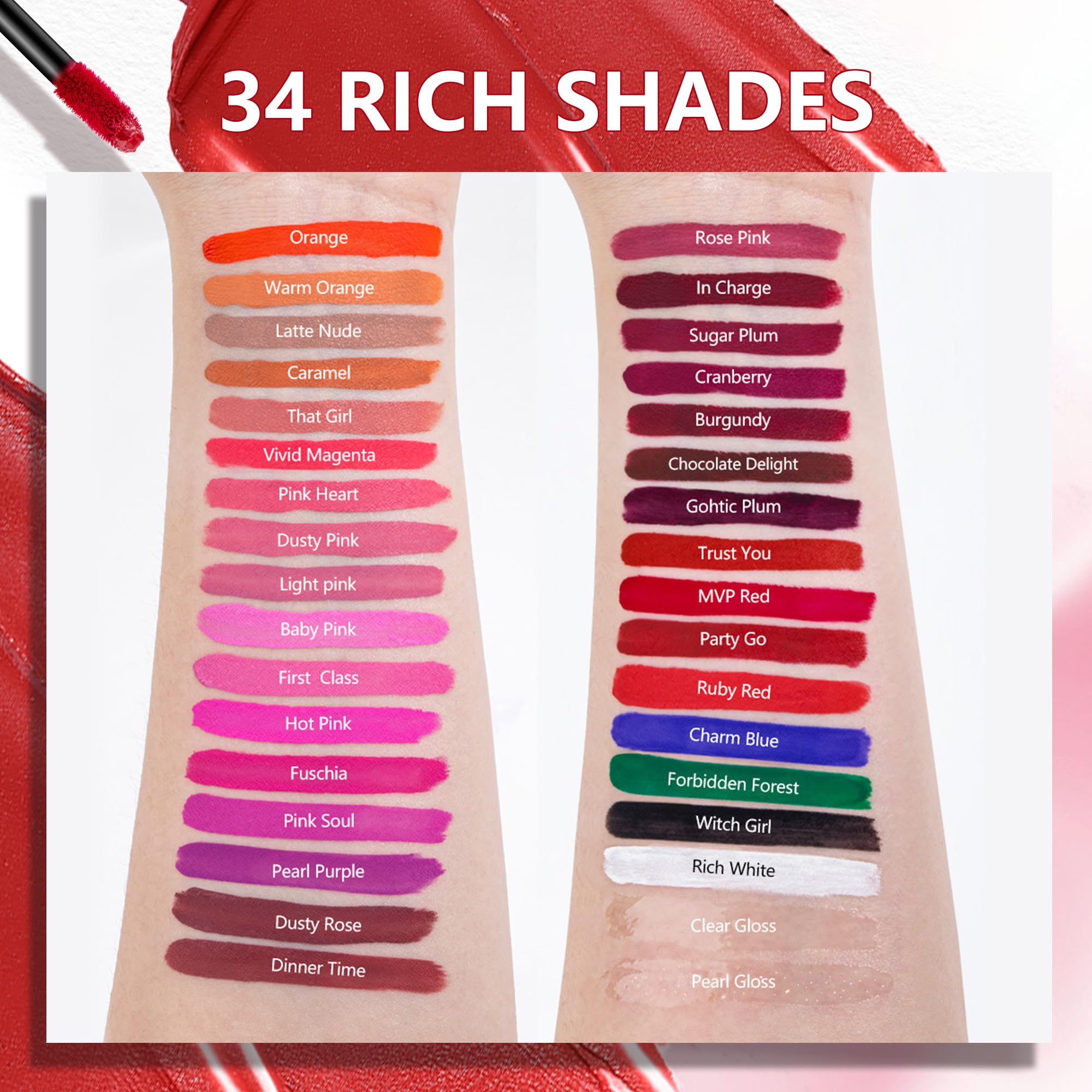 Long Lasting Lipstick: Our super stay lipstick ensures your lip color stays put up to 16 hours without smudging or fading. The color does not transfer when you drinking or eating for its full coverage