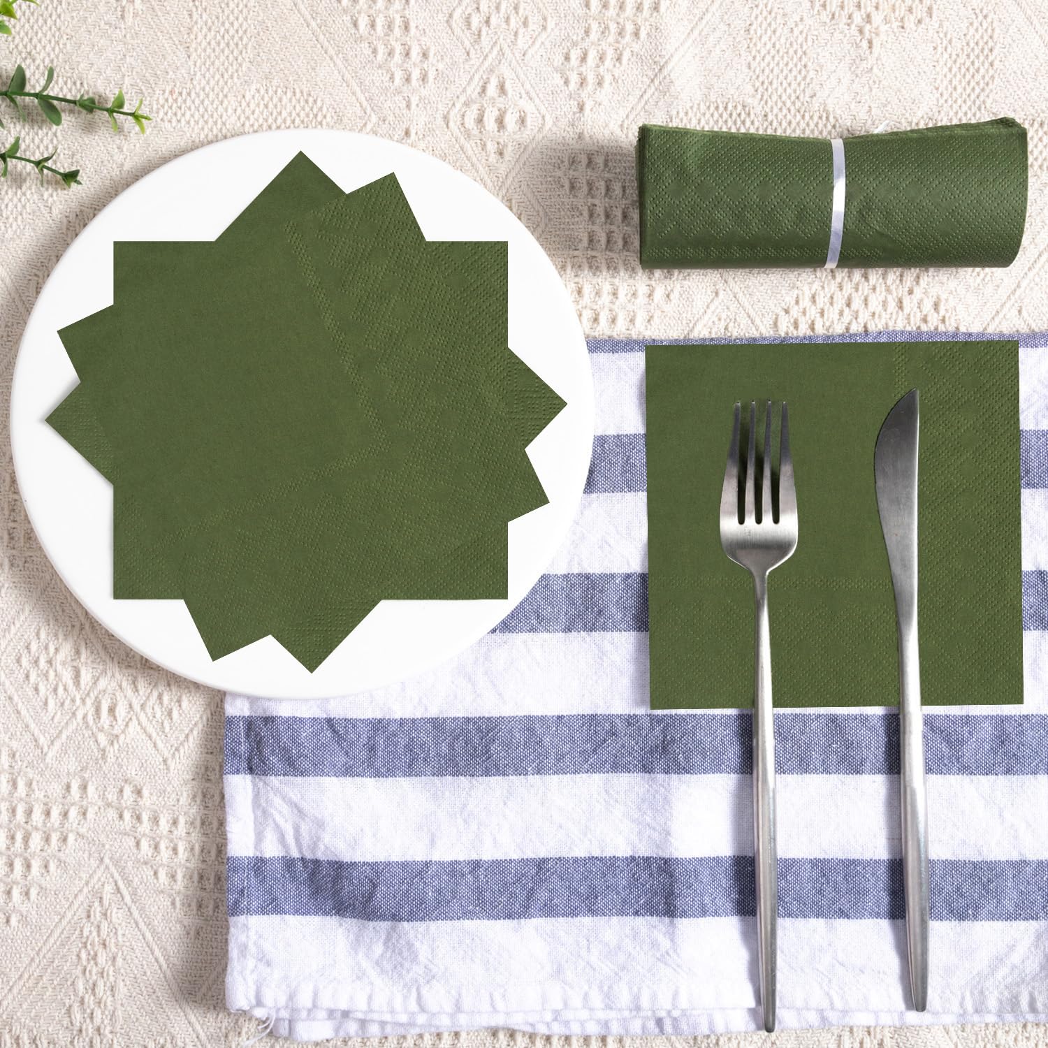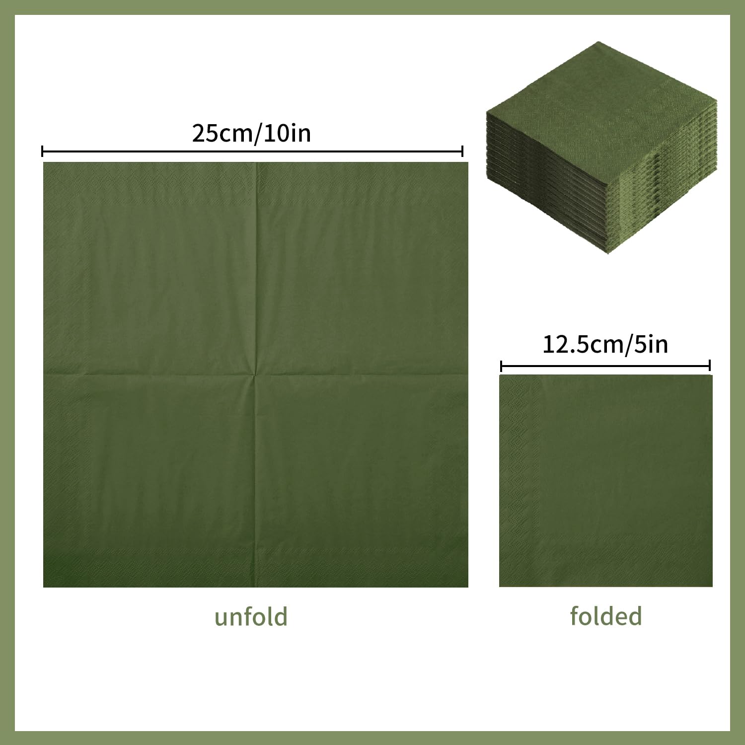 100 pieces of 2-ply paper napkins. the folded size of this napkin is 5 x 5, and the unfolded size is 10 x 10 inches. Multiple Uses - Our disposable cocktail napkins can be used for a multitude of uses. Including at your cocktail parties, weddings, bars, cafes, or any occasion. you can use these green cocktail napkins to decorate your luncheons, dinners, weddings, anniversaries, birthday parties, baby showers, outdoor BBQs, and so on, adding a fresh atmosphere to your party