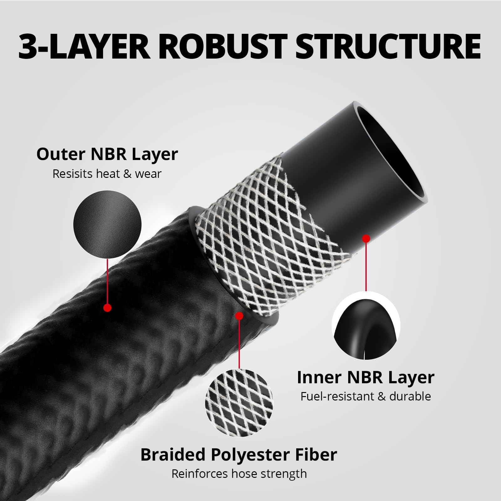 [Material] The 30R7 fuel hose is made of NBR and braided polyester fiber, oil and wear resistant.