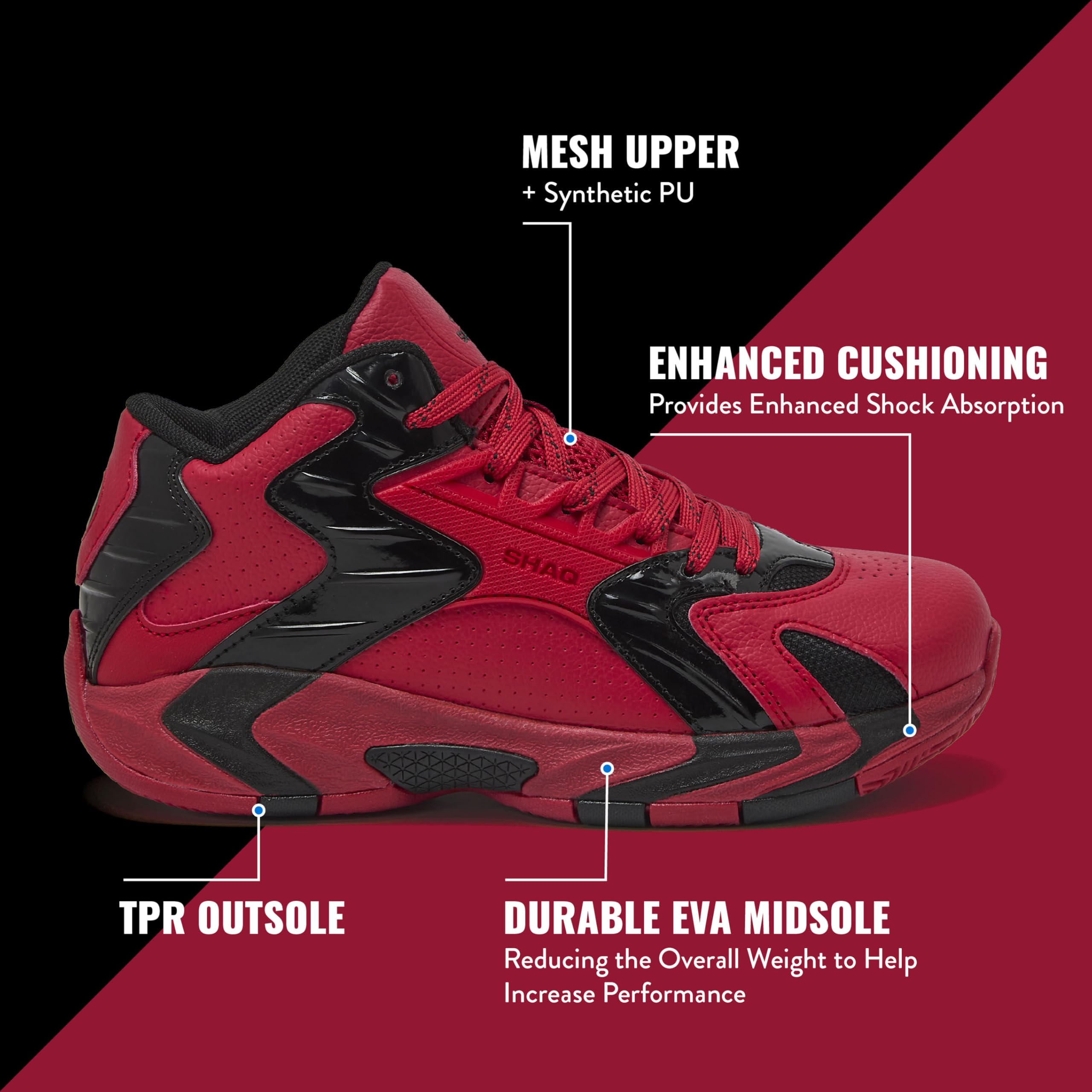 SHAQ BASKETBALL GIRLS AND BOYS SNEAKERS - Dominate the game in the all new SHAQ Devastator 2.5 youth and kids basketball shoes. Built for speed and agility on the indoor or outdoor court.